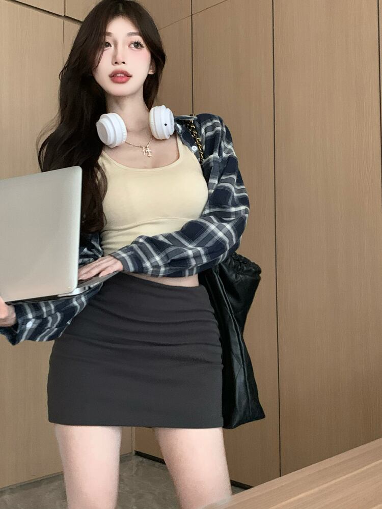 サマースリム格子柄シャツ ショートスカート セット ストリート 夏物 10/5 秋冬 オータム ウインター ナチュラル mi4657060316732