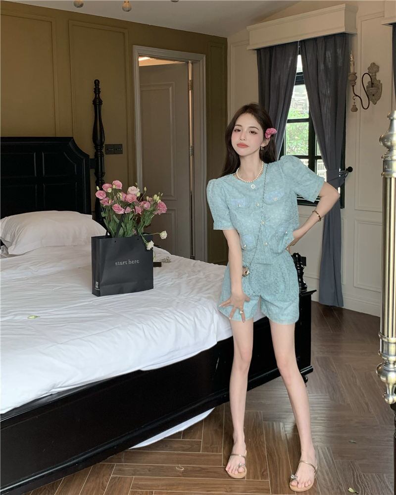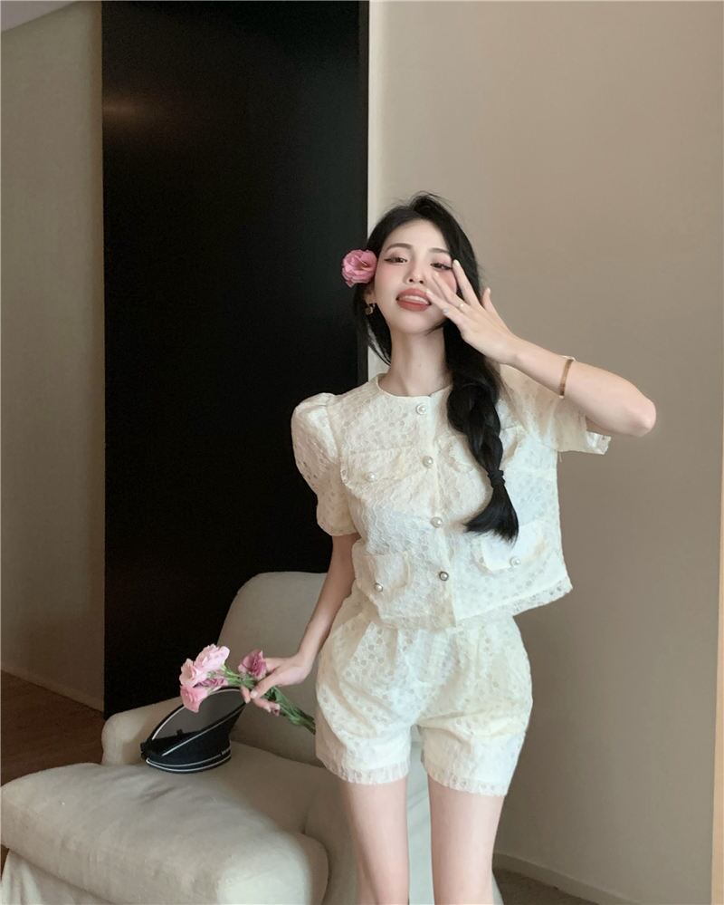 サマーレーススリーブトップス ハイウェストウェストショーツ 夏物 ブルマー 10/5 秋冬 オータム ウインター ナチュラル mi4674304194086