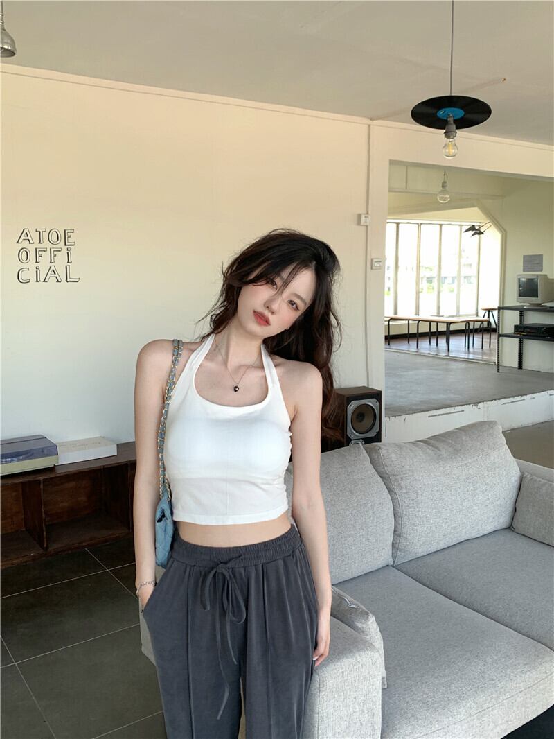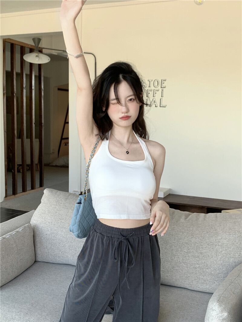 ホワイトホルターサマーショートバックトップス 夏物 10/5 秋冬 オータム ウインター ナチュラル mi464577168087