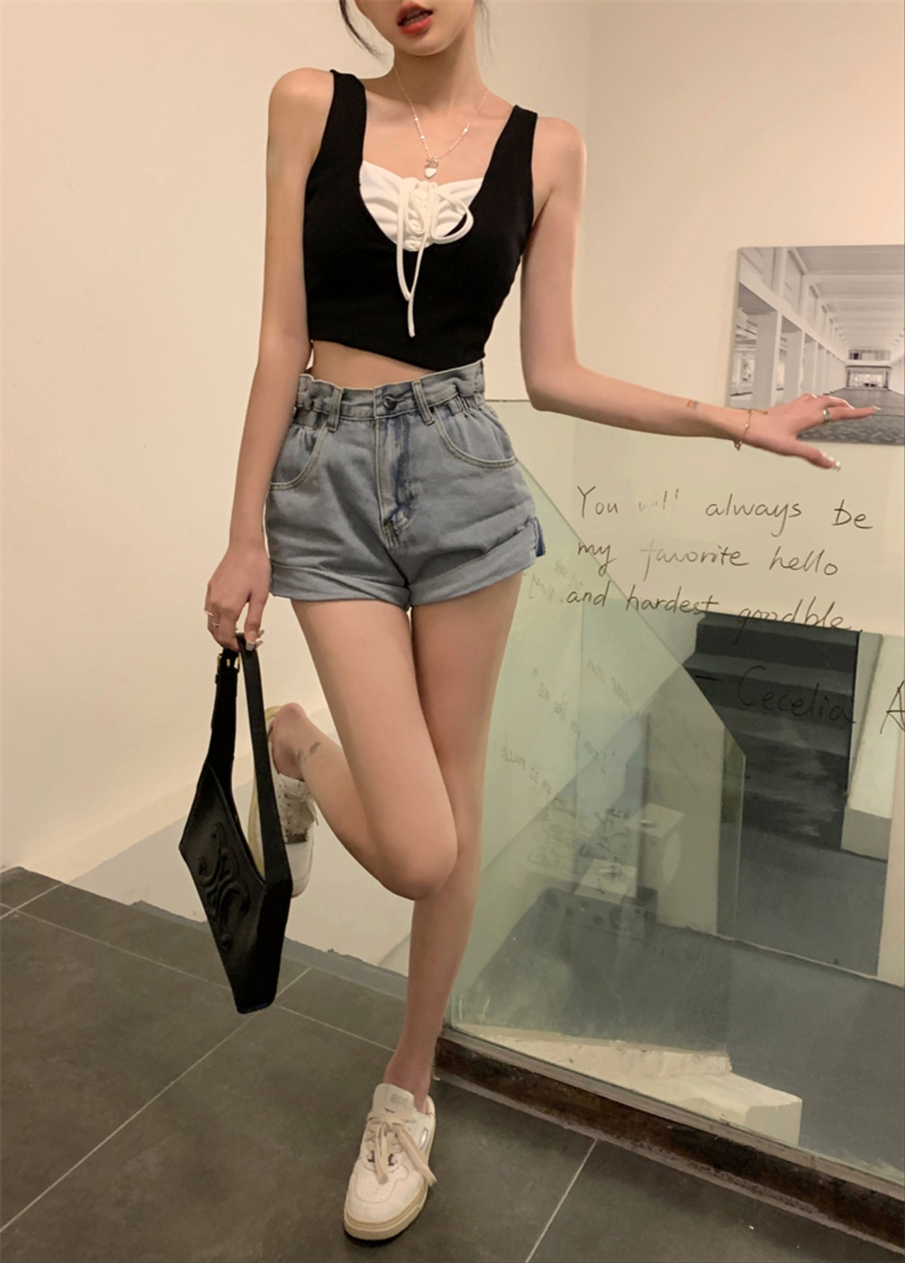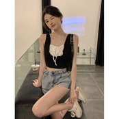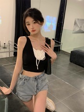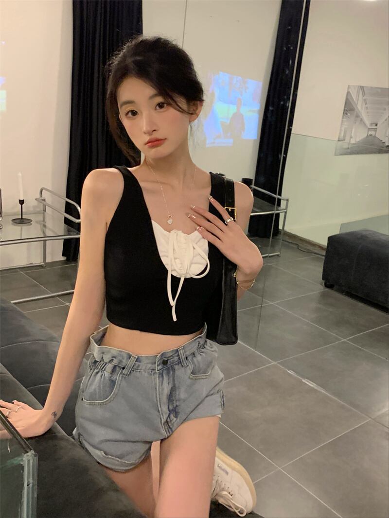 レースサマースリムショートトップス 夏物 レースアップ 10/5 秋冬 オータム ウインター ナチュラル mi4694349723516