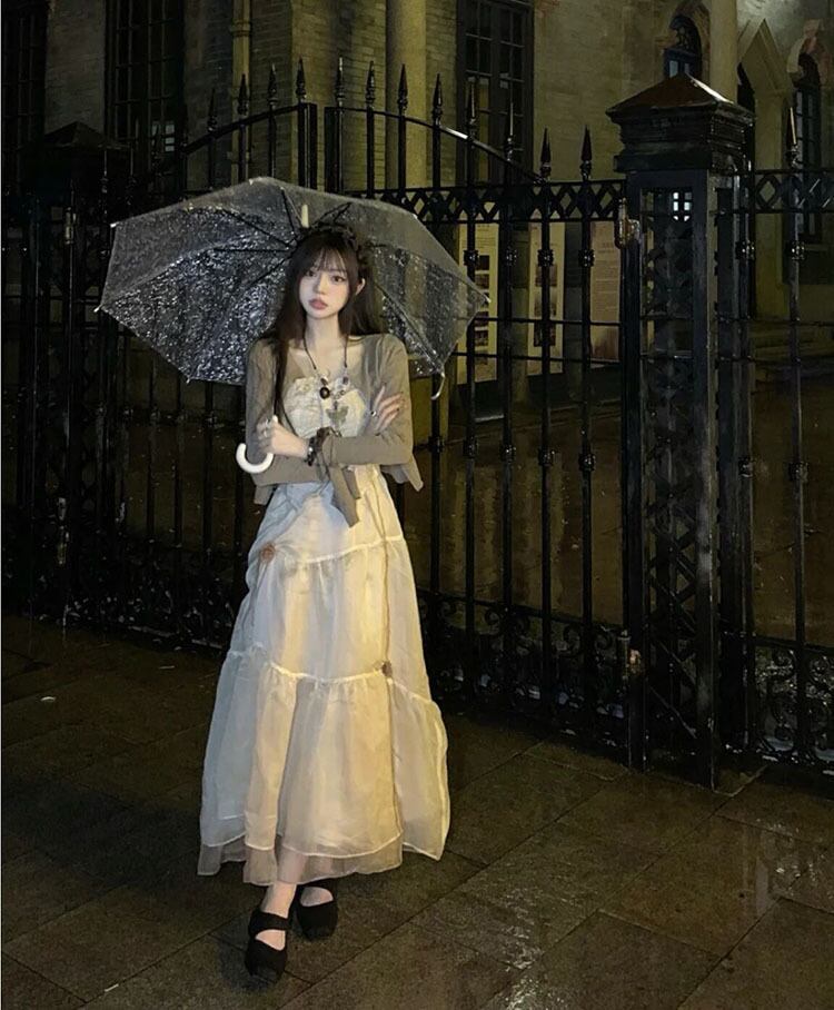 Flowerデザイン トップス ドレス サマーウェストメッシュロングスカート 夏物 フラワーデザイン 10/5 秋冬 オータム ウインター ナチュラル mi4615975407309