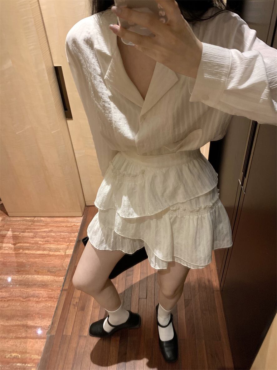 サマーシャツ トップス ハイウェストウェストスカート セット ロング 夏物 10/5 秋冬 オータム ウインター ナチュラル mi4695513618953