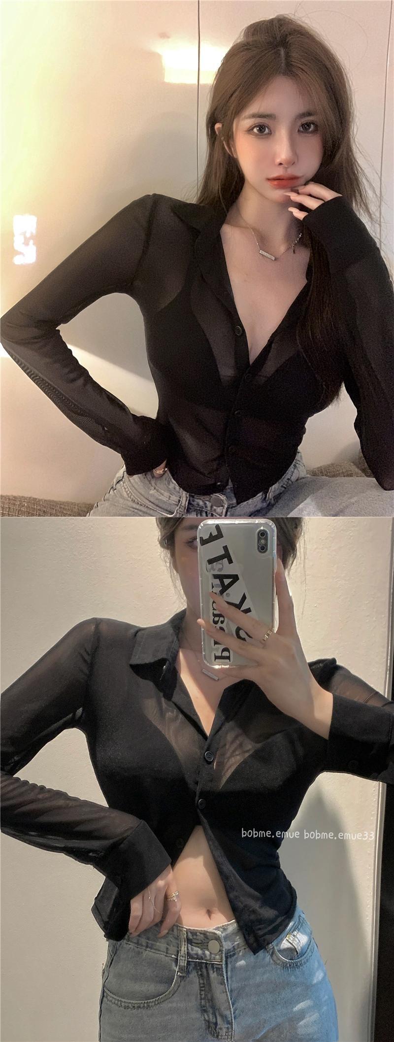 ブラックメッシュシャツ 薄手オータムスリムショートトップス 秋物 10/5 秋冬 オータム ウインター ナチュラル mi4685295052274