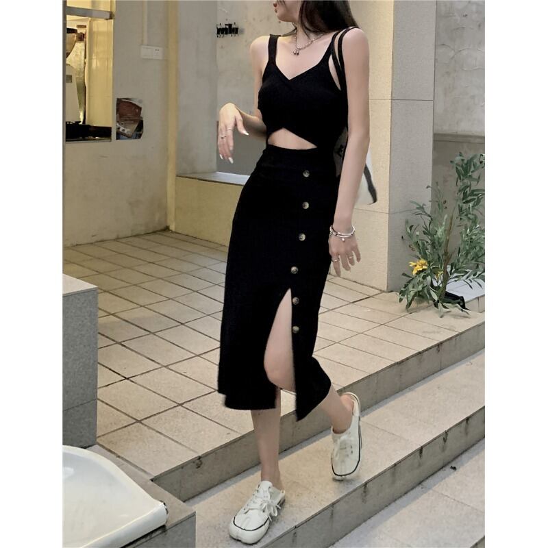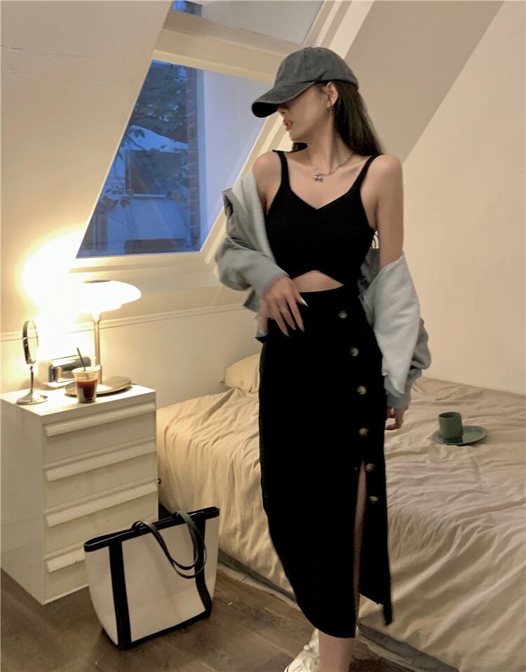 ブラックニットドレス サマースリットスリムフィットスカート 夏物 10/5 秋冬 オータム ウインター ナチュラル mi4650687714809