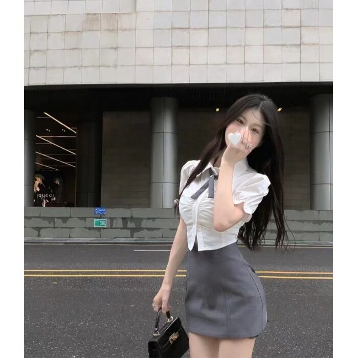スタイルサマースリーブシャツ ハイウェストウェストAラインスカート セット 夏物 ピュア 10/5 秋冬 オータム ウインター ナチュラル mi4660818188109
