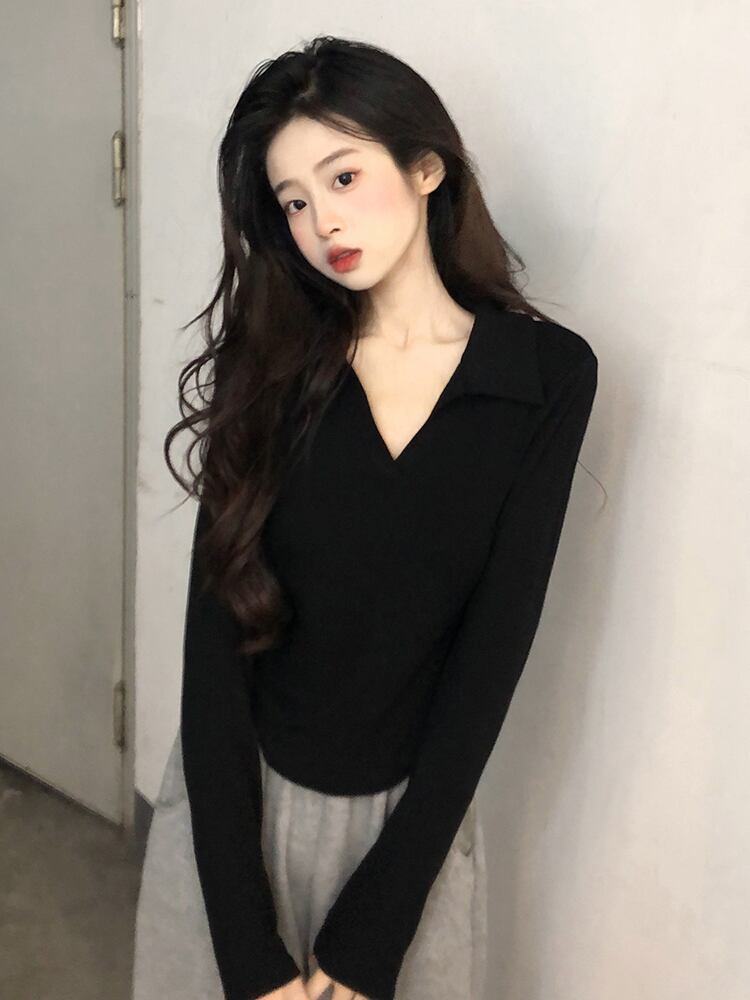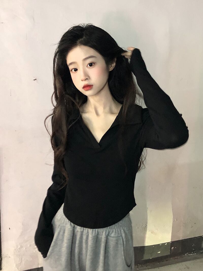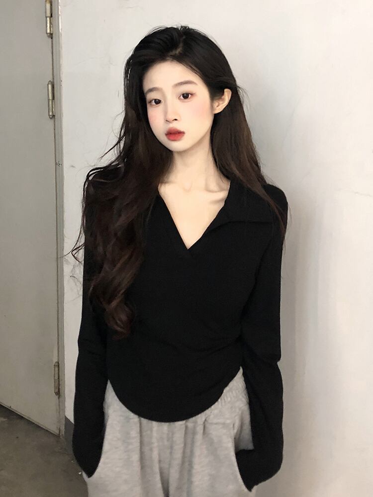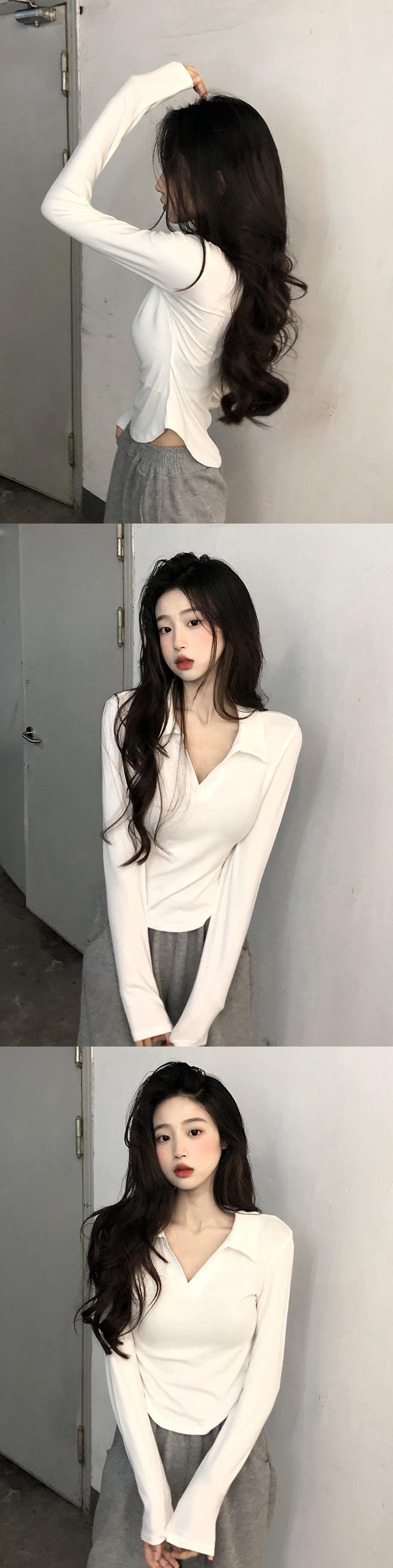 色:ホワイトラペルロングスリーブT,ブラックラペルロングスリーブT
