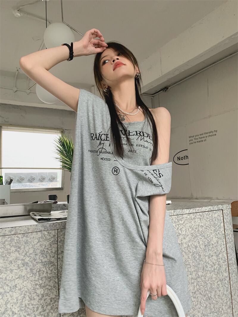 ルーズグレーノースリーブTシャツ サマートップス 夏物 10/5 秋冬 オータム ウインター ナチュラル mi4697980808358
