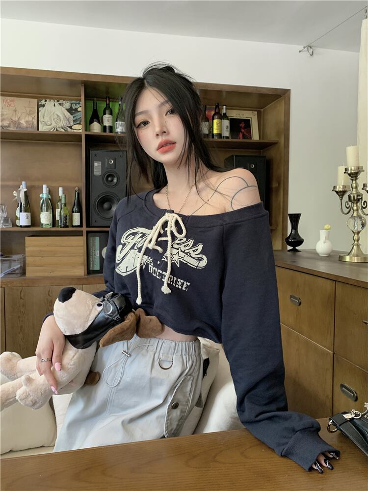 プリント柄ショートセーター オータム薄手トップス 秋物 10/5 秋冬 オータム ウインター ナチュラル mi4632657639403