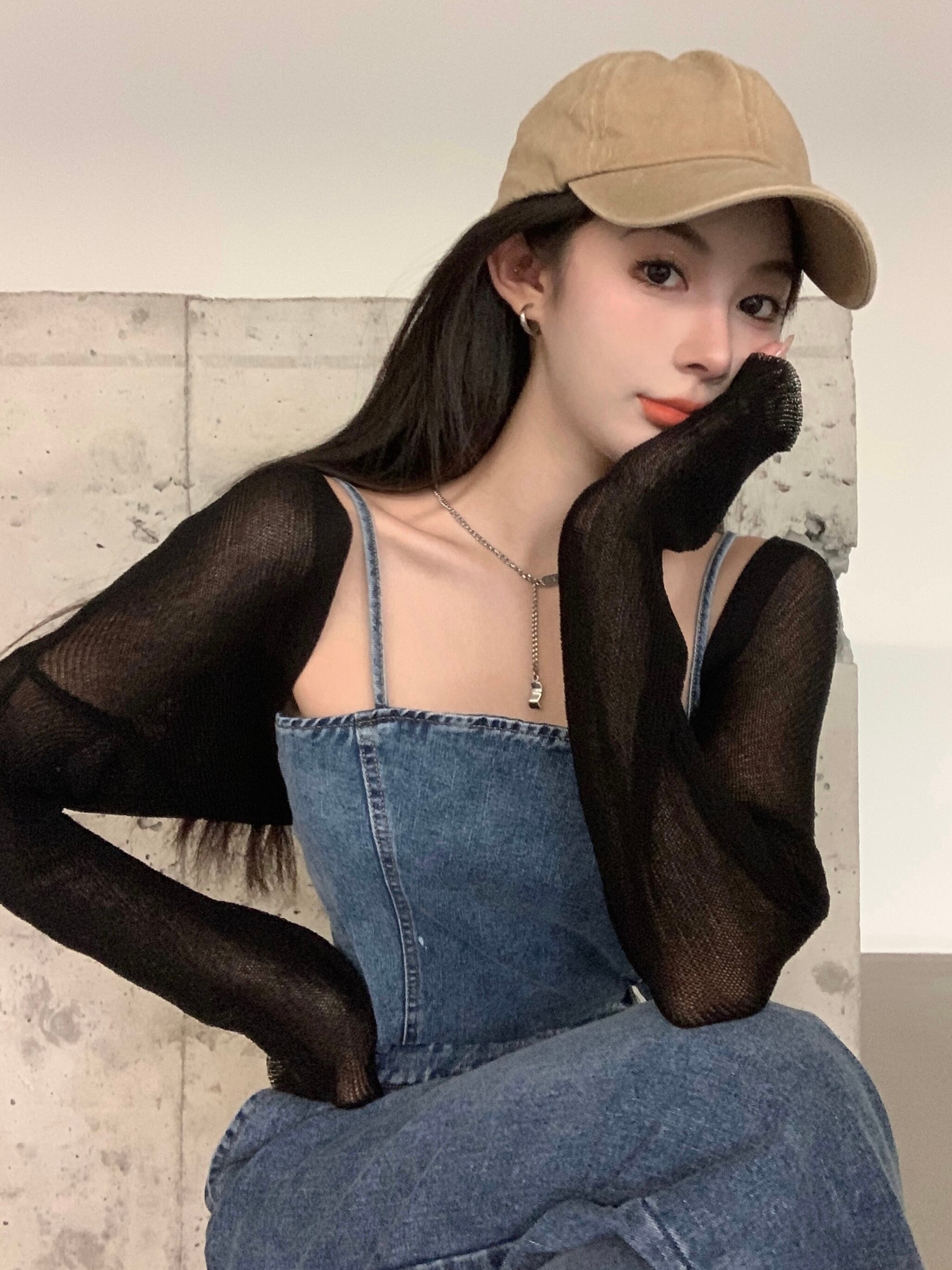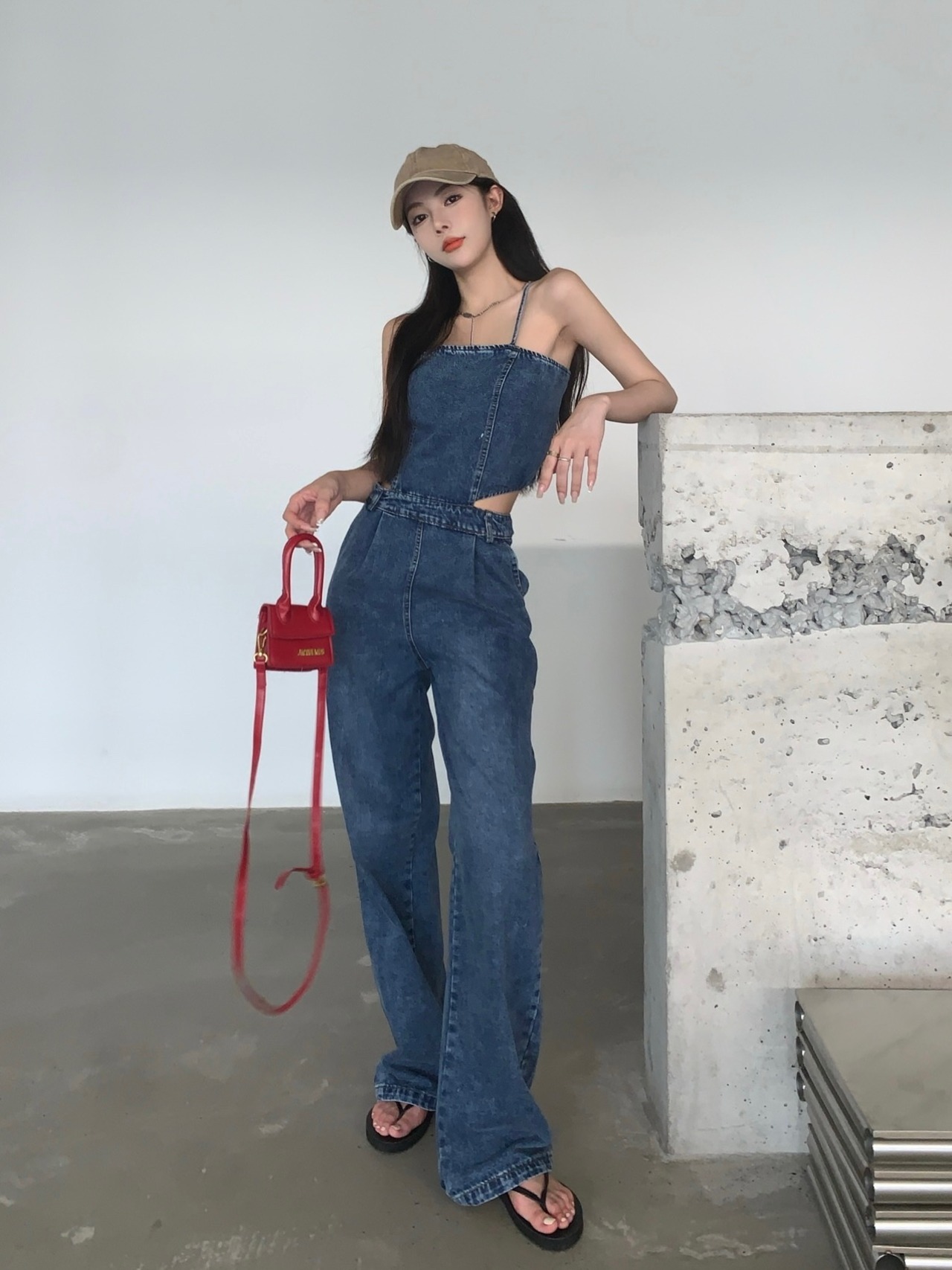 色:デニムジャンプスーツ,ブラックカーディガンワンピース