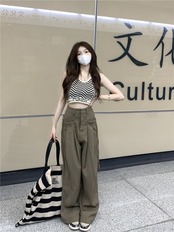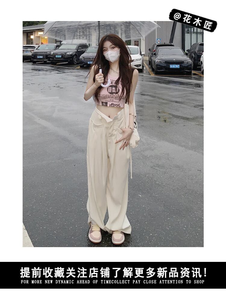 レースハイウェストウェストカジュアルパンツ オータムルーズ ストリート 秋物 10/5 秋冬 オータム ウインター ナチュラル mi4661471930128