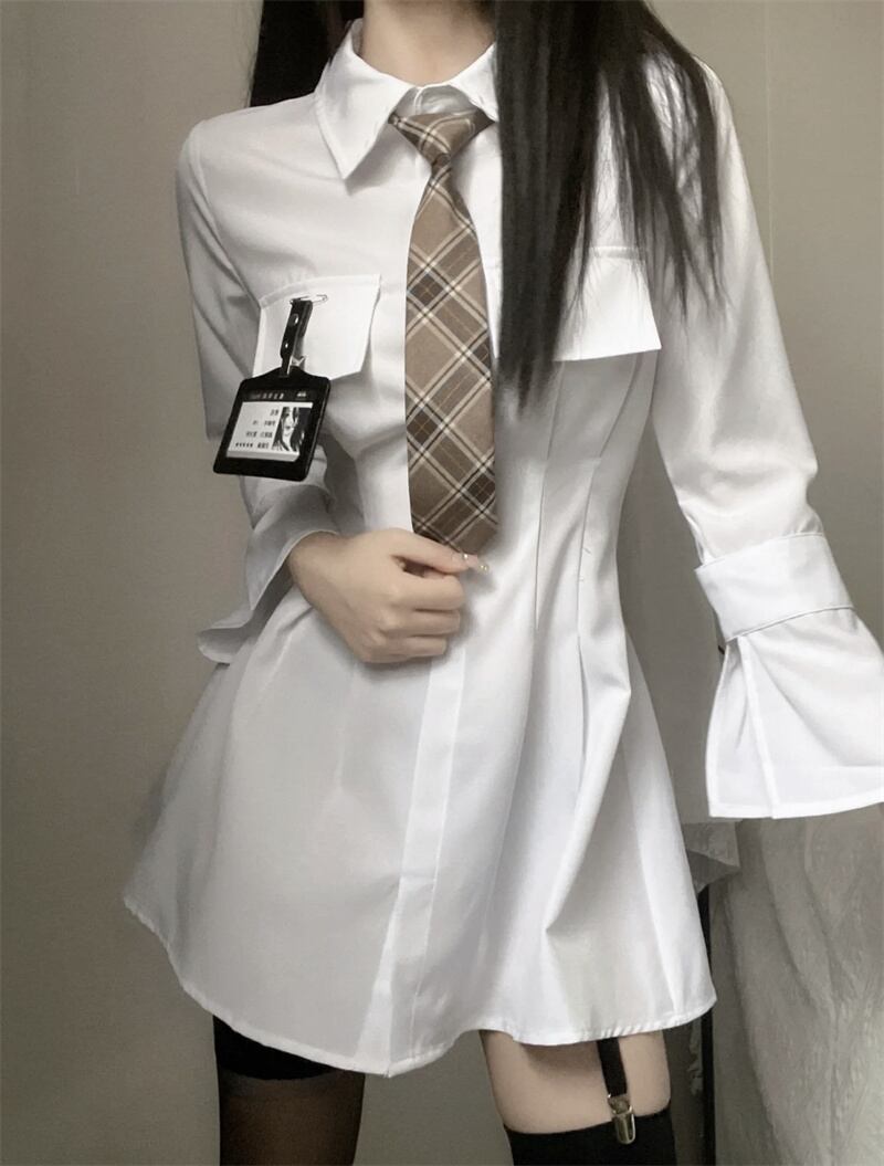 スタイルホワイトシャツ ドレス オータムウェスト薄手Aラインスカート ロング 秋物 10/5 秋冬 オータム ウインター ナチュラル mi4649161812417
