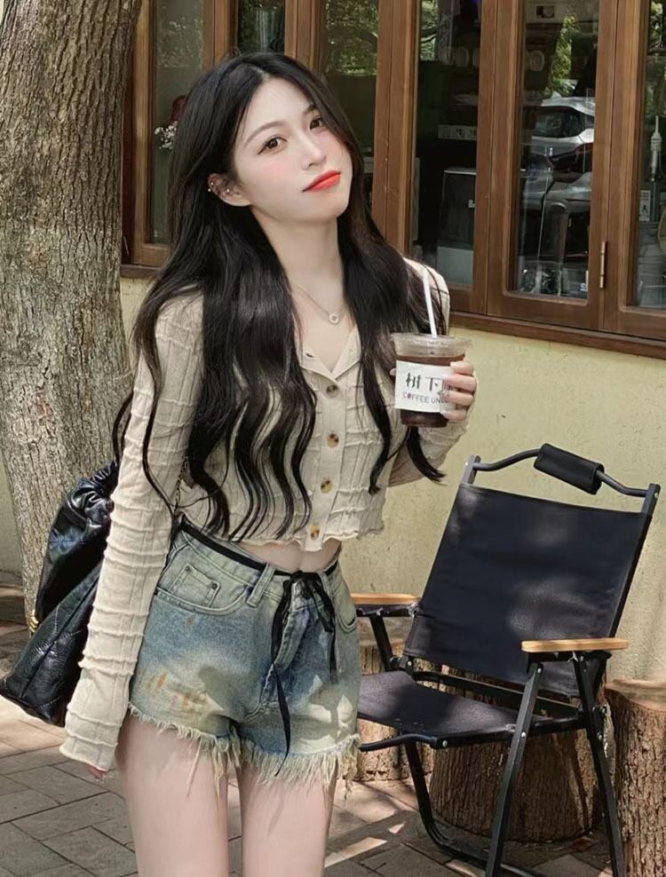 色:ワンピースアプリコットトップ,ジーンズ一枚