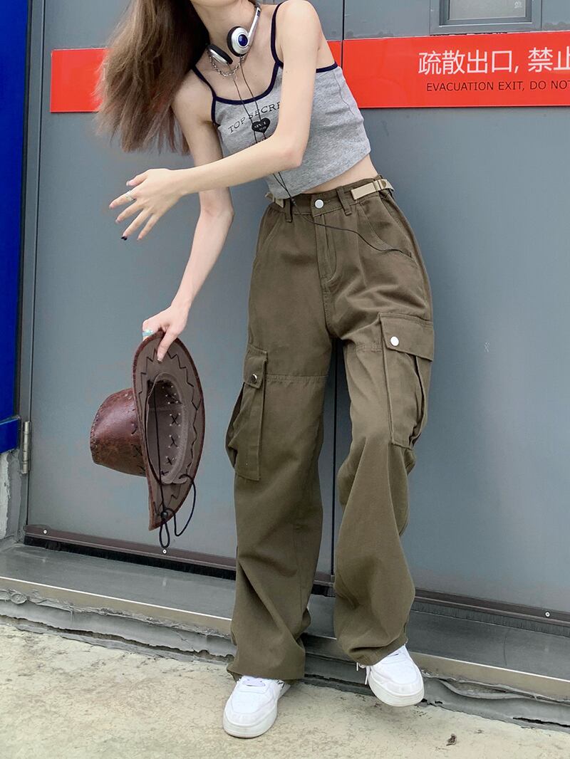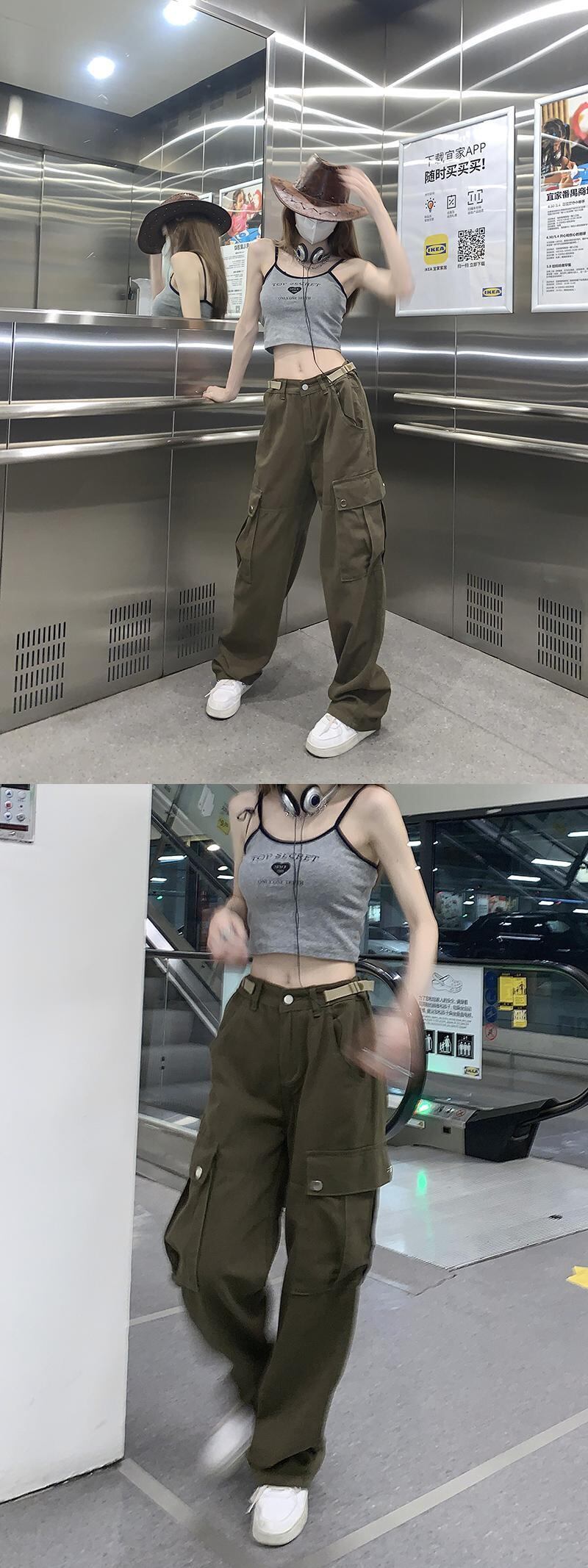 グリーンオーバーオール ルーズパンツ サマーハイウェストウェストカジュアル 夏物 10/5 秋冬 オータム ウインター ナチュラル mi4614174752840