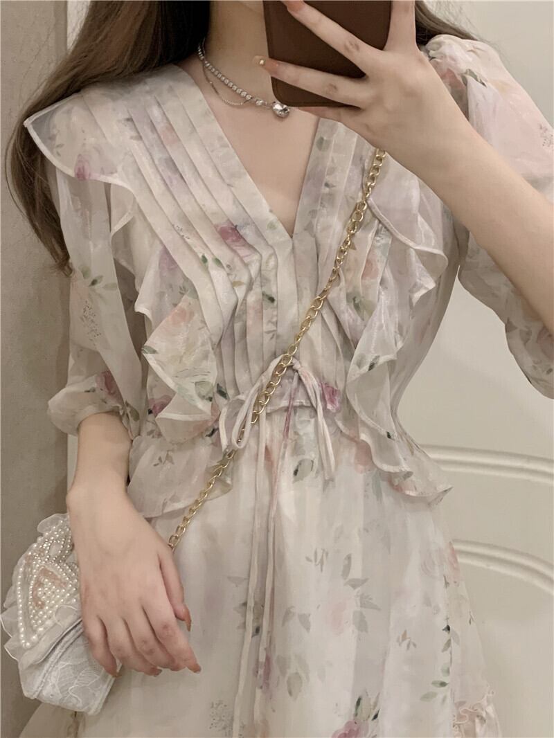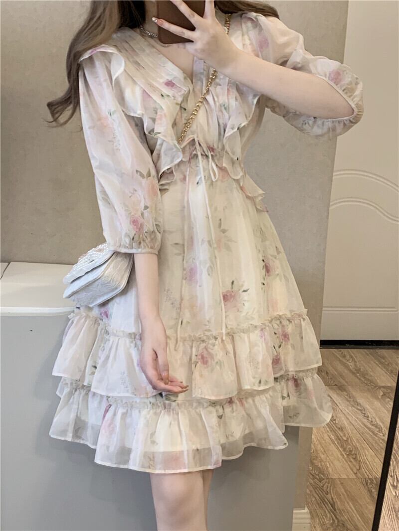フローラルドレス サマーウェストスカート 大人ガーリー スウィート キュート カジュアル 夏物 花柄 パニエ ペチコート 10/5 秋冬 オータム ウインター ナチュラル mi4657506080631