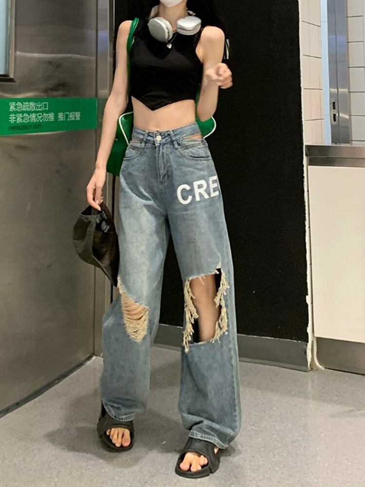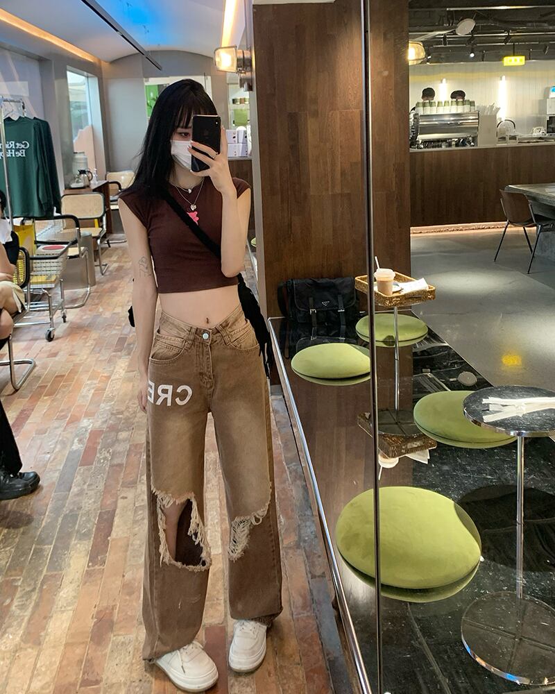 プリントハイウェストジーンズ オータムパンツ 秋物 10/5 秋冬 オータム ウインター ナチュラル mi4637038501018
