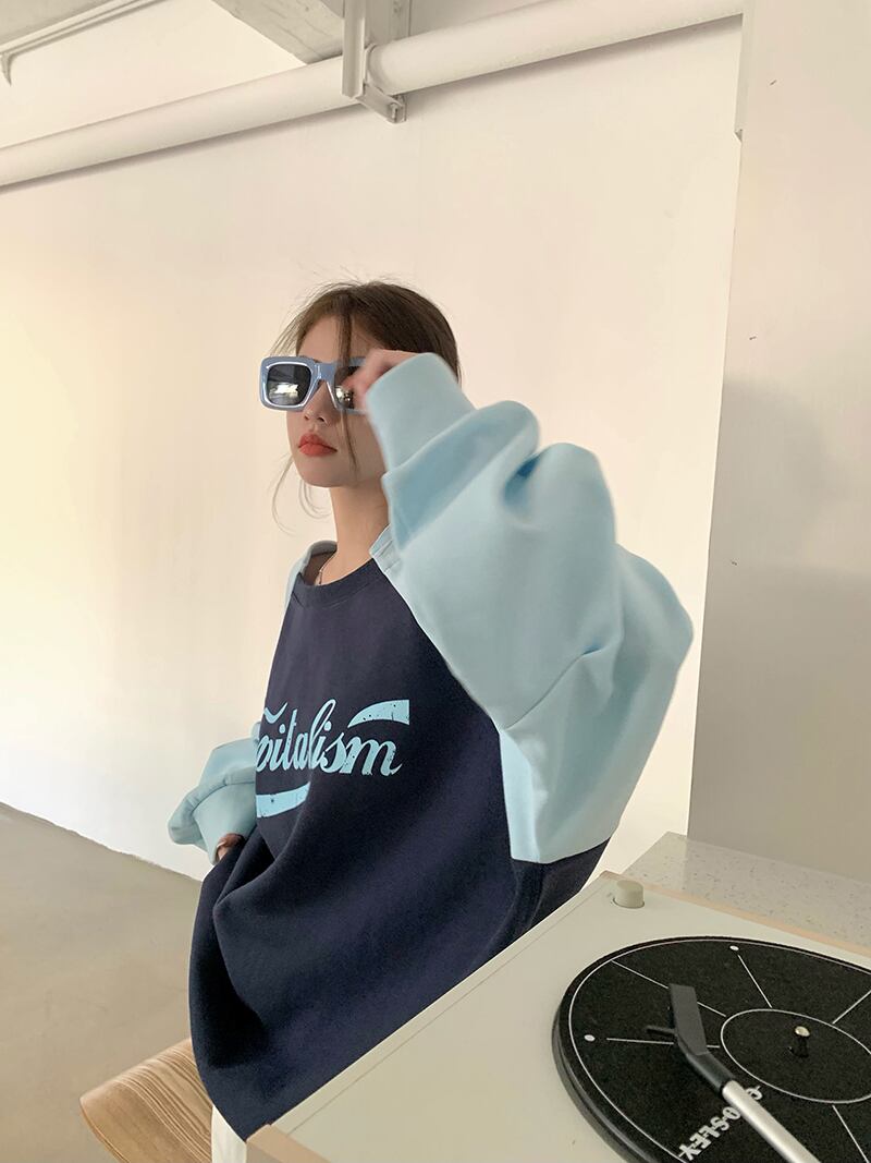 色:青いセーター