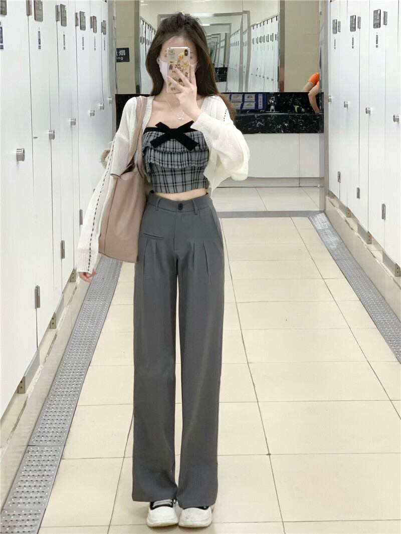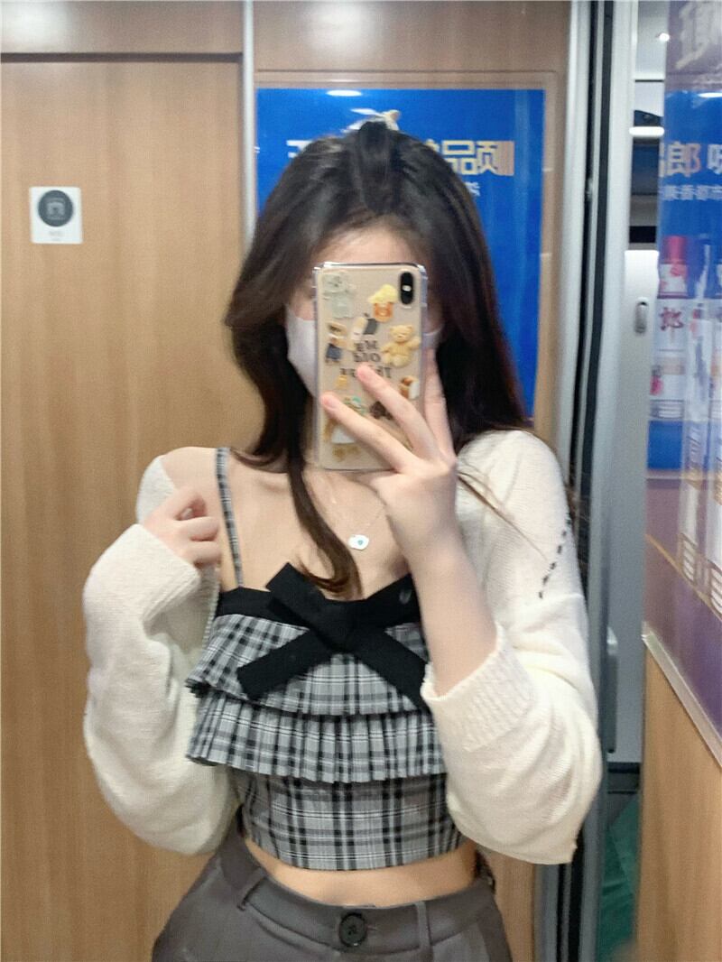 リボン格子柄サマーショートトップス 夏物 10/5 秋冬 オータム ウインター ナチュラル mi4670805295547