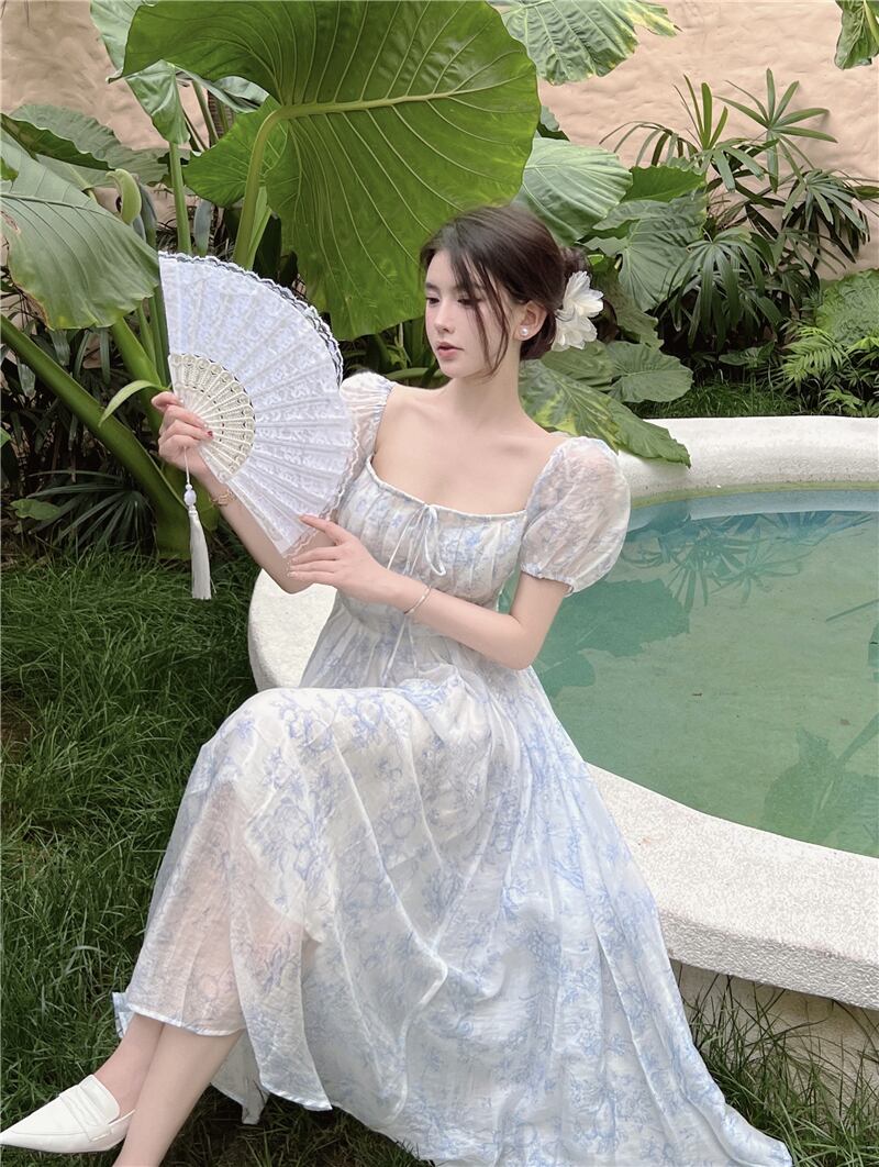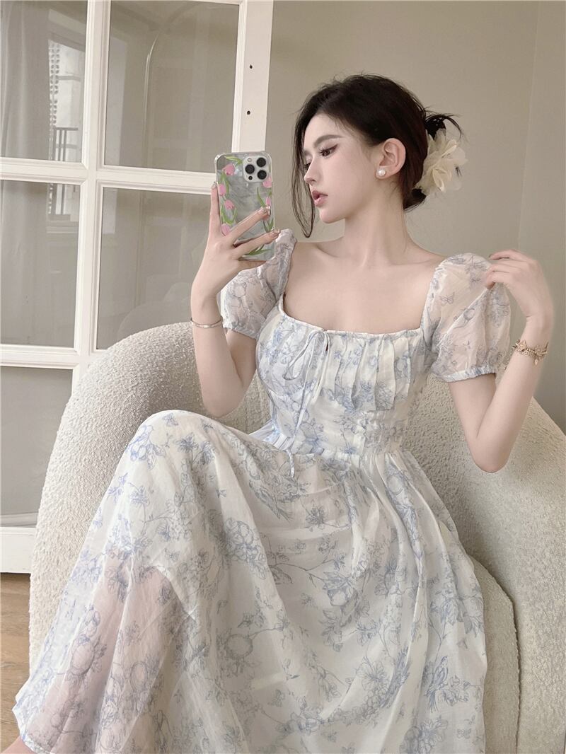 フローラルドレス サマーウェストスリーブAラインスカート 夏物 花柄 スクウェア 10/5 秋冬 オータム ウインター ナチュラル mi468746886