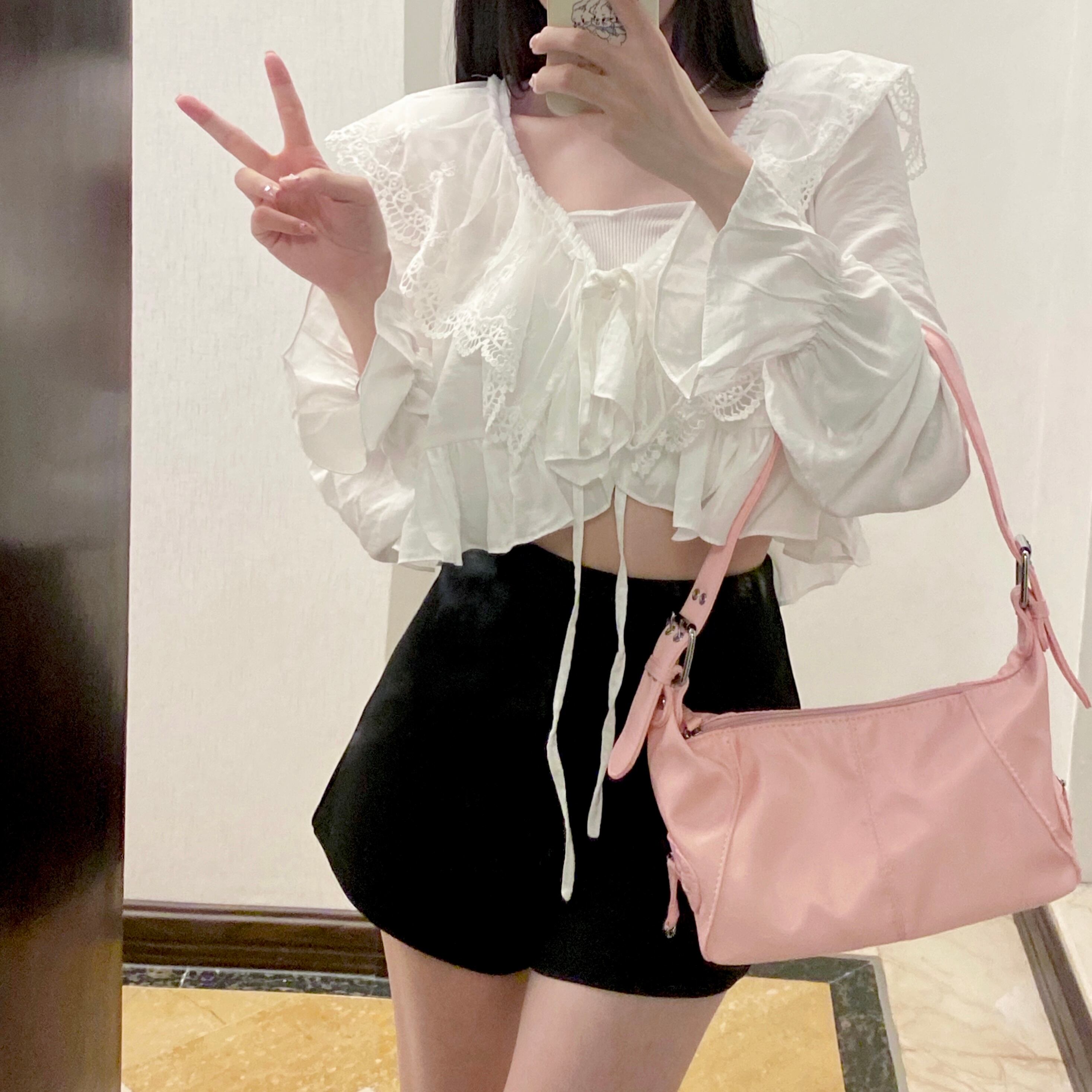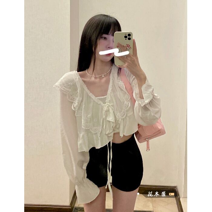 レースホワイトオータムショートトップス 秋物 レースアップ 10/5 秋冬 オータム ウインター ナチュラル mi4619630695766