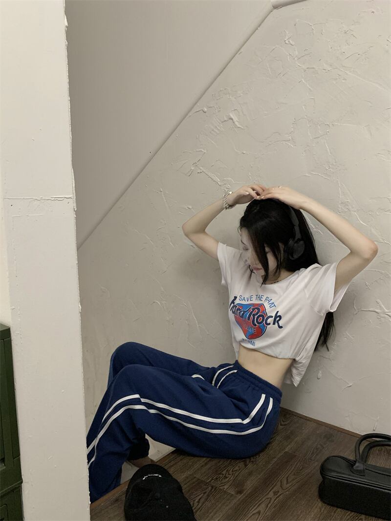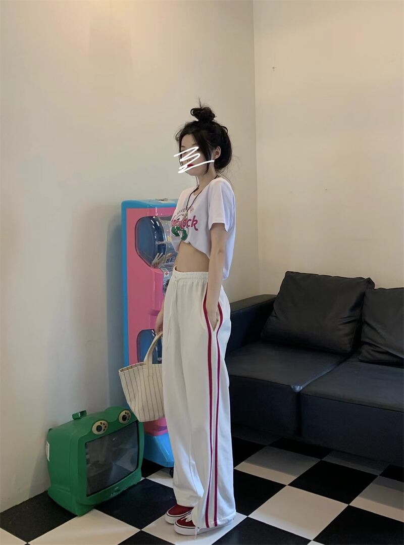 色:ホワイトブループリントT,ホワイトパープルプリントT,白と紫のカジュアルパンツ,青と白のスウェットパンツ