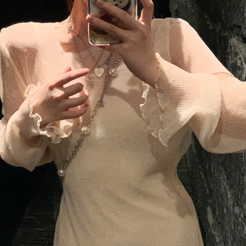 色:白檀のトップ+インナー,優しいプリーツドレス