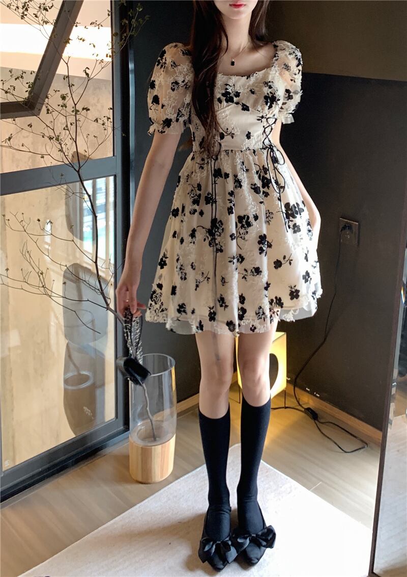 スタンダードフローラルドレス サマーストラップ ウェスト薄手Aラインスカート レッド レトロ 刺繍 夏物 花柄 10/5 秋冬 オータム ウインター ナチュラル mi4628851011069