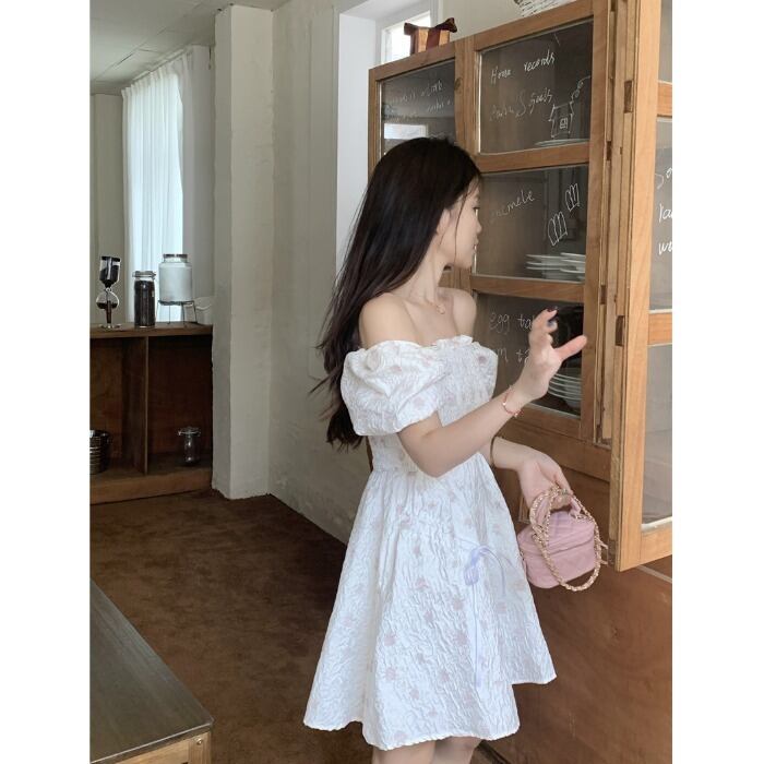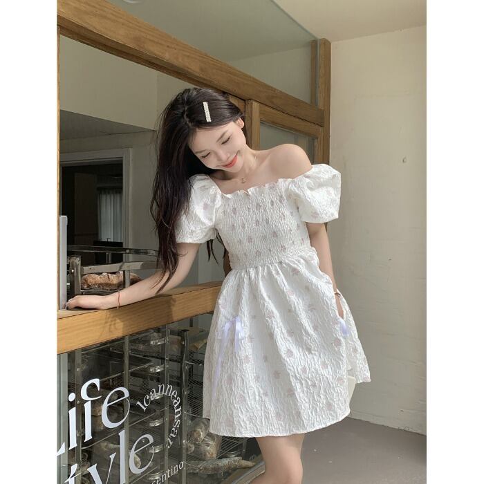 Flowerデザイン スリーブドレス サマーウェストスカート 大人ガーリー スウィート キュート カジュアル 夏物 パニエ ペチコート フラワーデザイン 10/5 秋冬 オータム ウインター ナチュラル mi46517183046