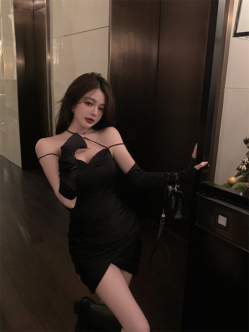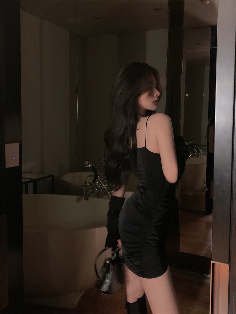 プリーツブラックドレス オータムスリムスカート 秋物 スリムヒップ 10/5 秋冬 オータム ウインター ナチュラル mi4616499102649