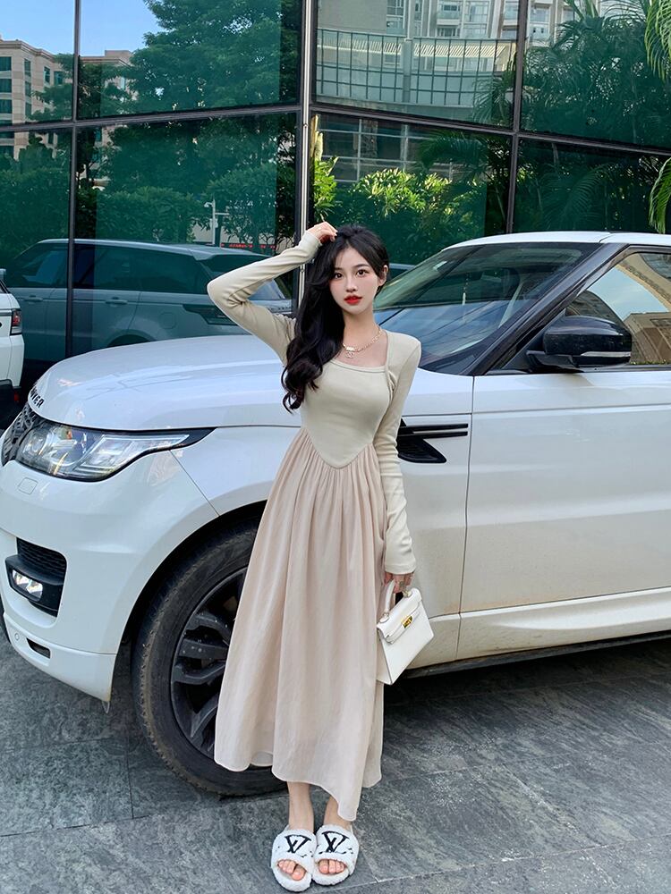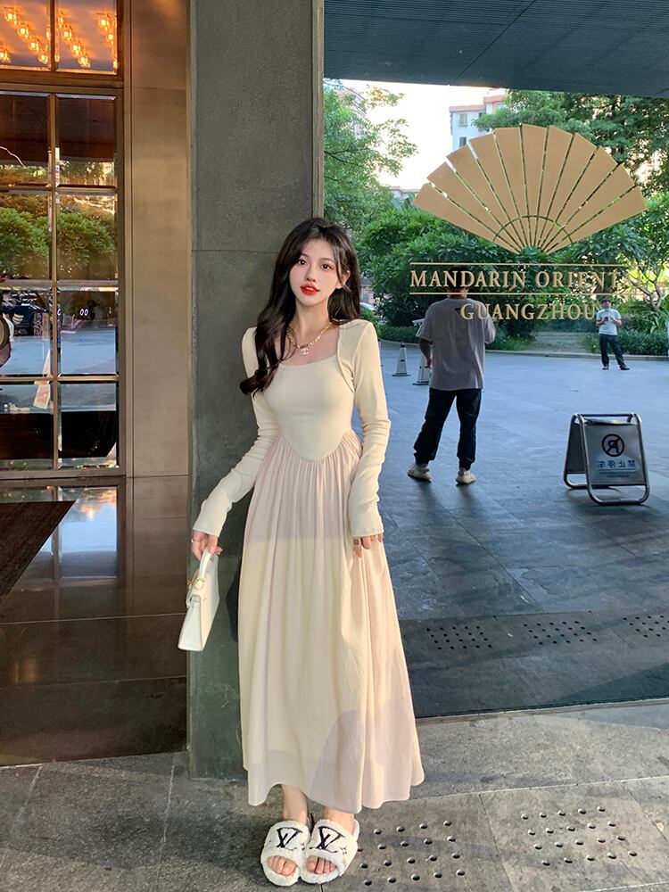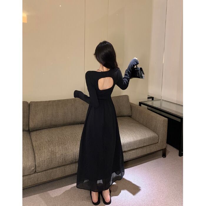 バックレスドレス オータムスタイルウェストAラインスカート ロング 秋物 スクウェア 10/5 秋冬 オータム ウインター ナチュラル mi4667978506236
