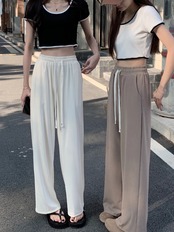 パンツ ハイウェストウェストギャザースリムカジュアル シルク 10/5 秋冬 オータム ウインター ナチュラル mi4695596689404