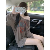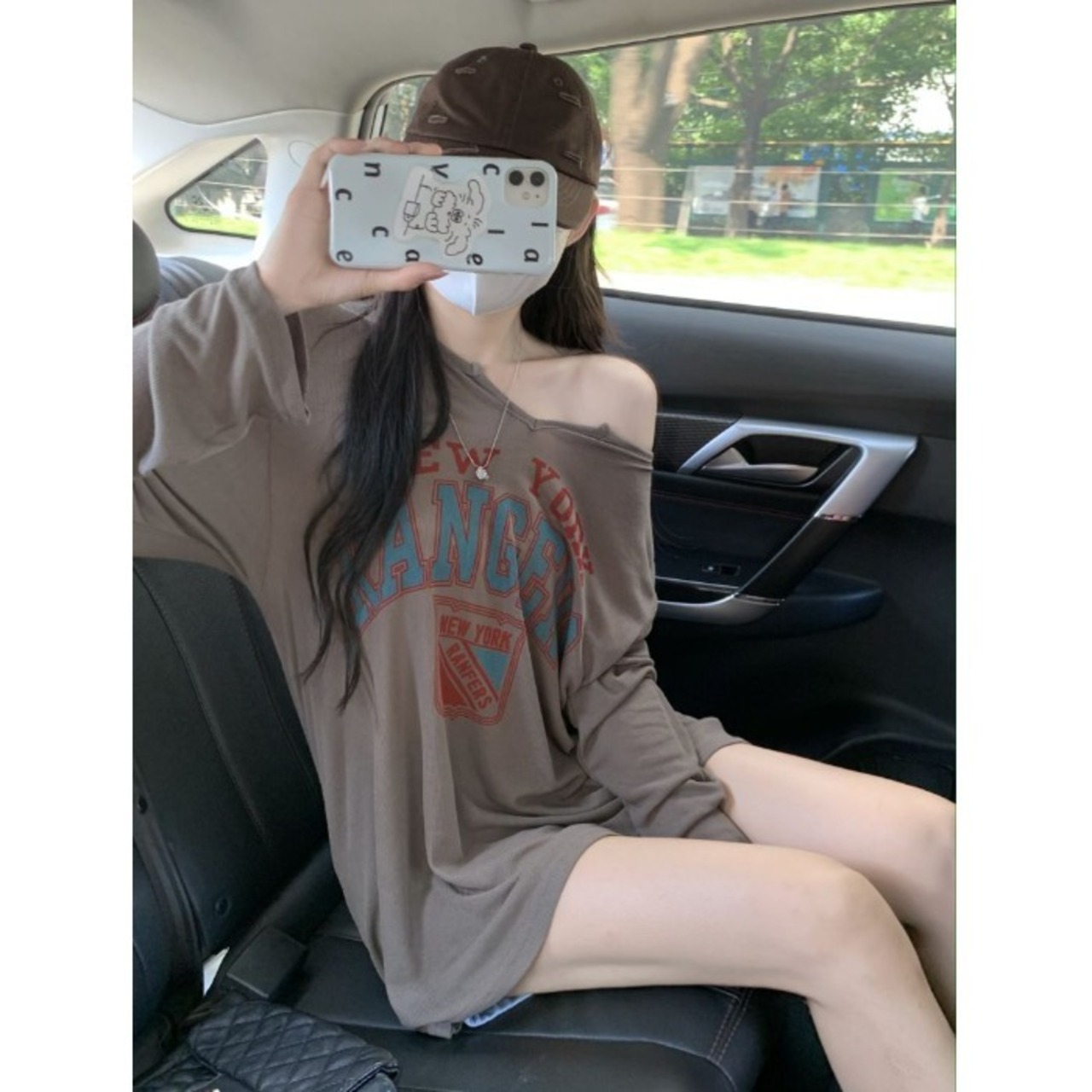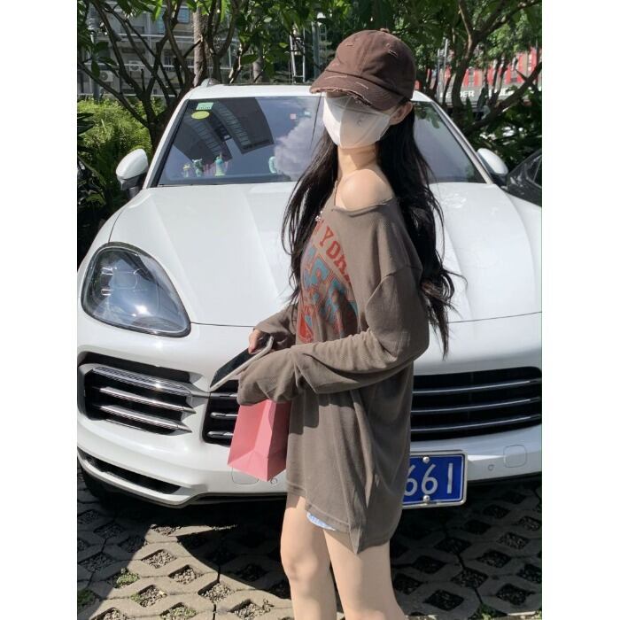 プリントTシャツ オータムルーズトップス ロング 秋物 10/5 秋冬 オータム ウインター ナチュラル mi4658652636458