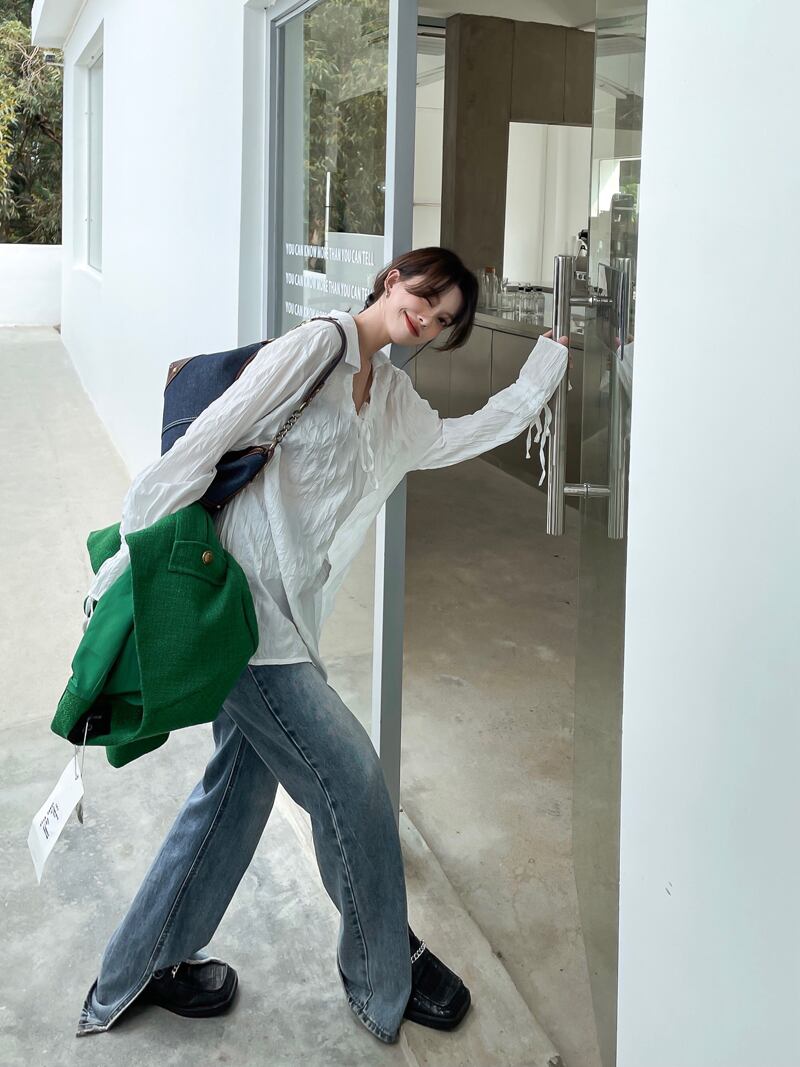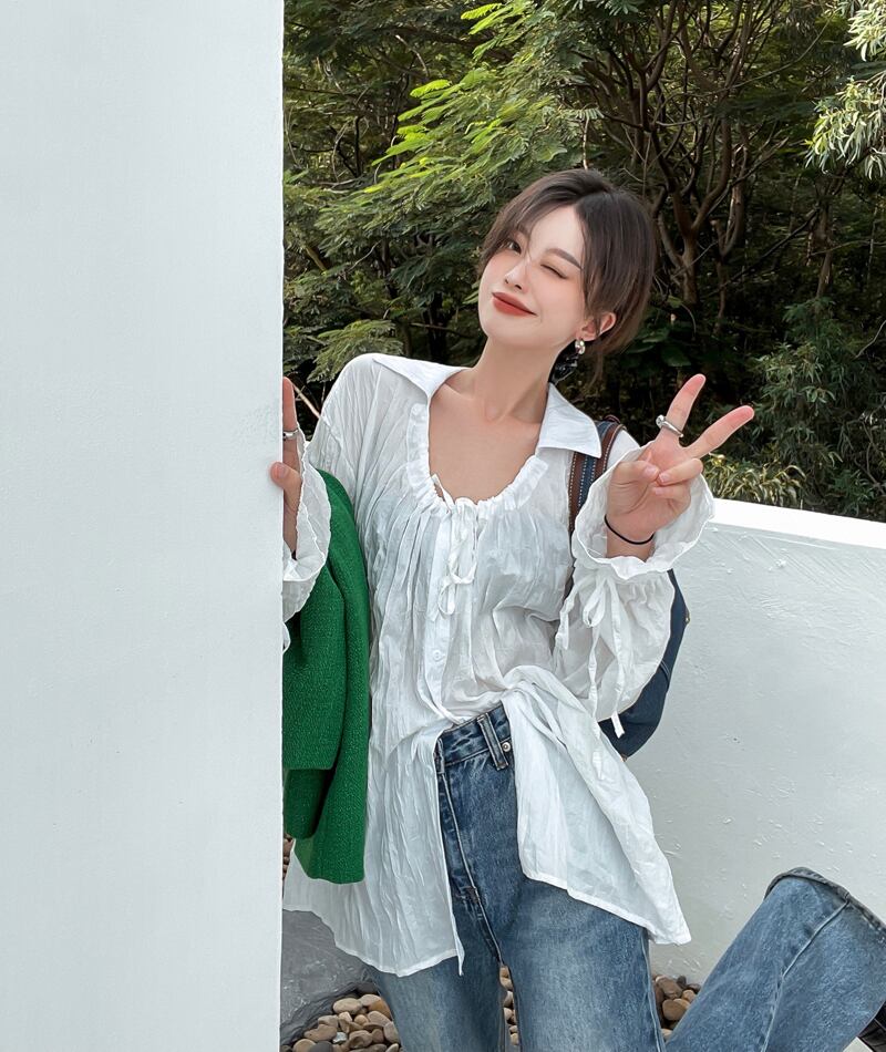 プリーツVネックギャザーシャツ オータムルーズトップス 秋物 10/5 秋冬 オータム ウインター ナチュラル mi4688157638894