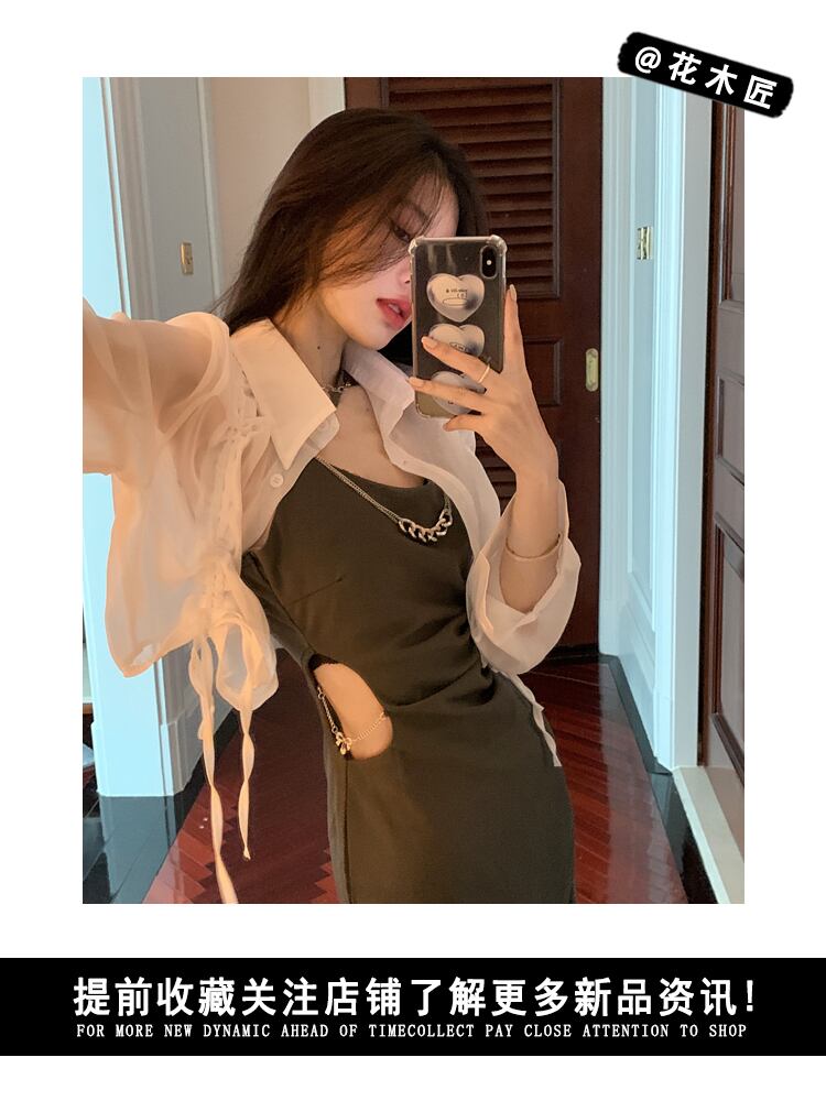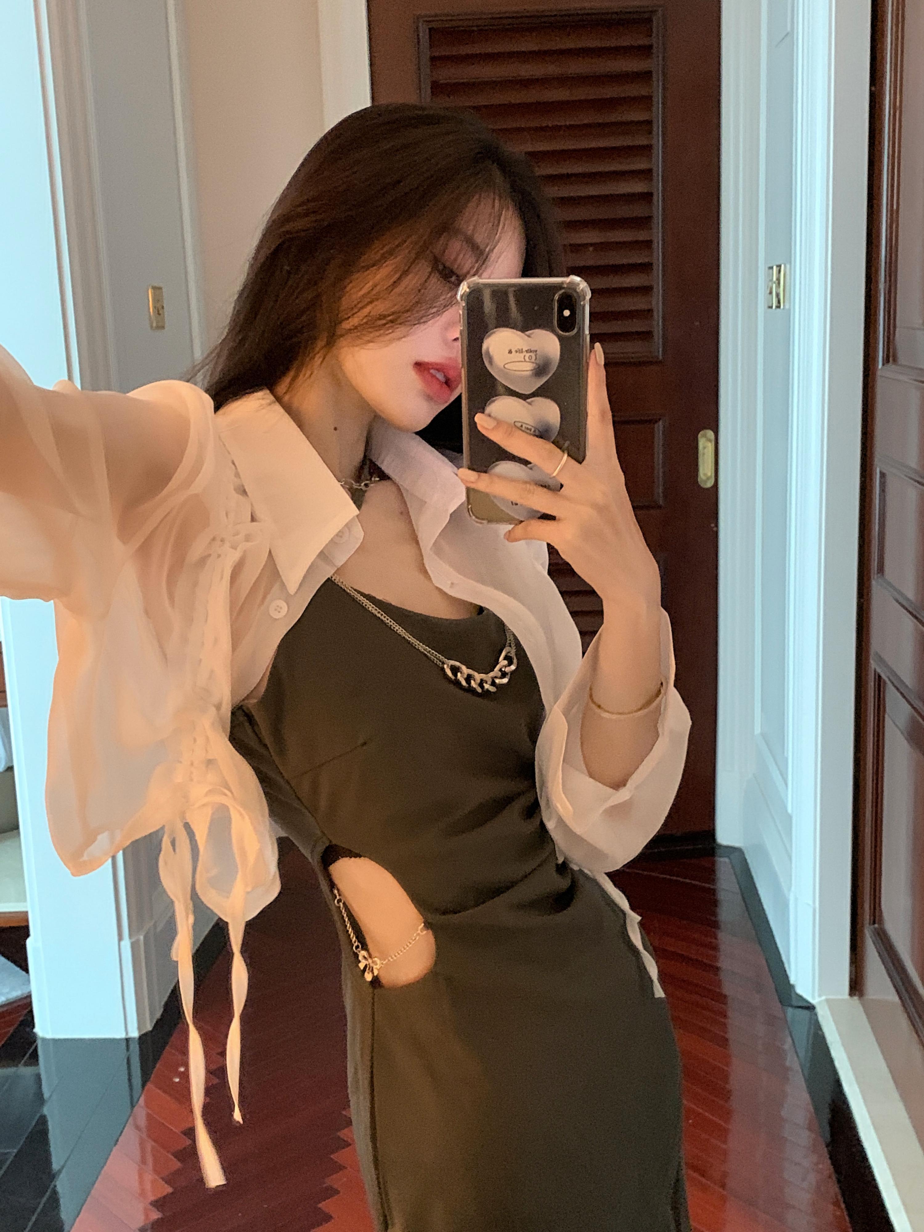 ホワイト薄手シャツ ジャケット オータムギャザートップス ロング 秋物 10/5 秋冬 オータム ウインター ナチュラル mi464197390285