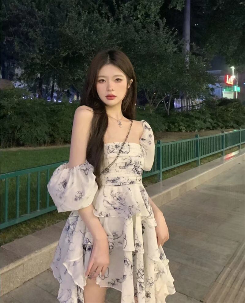 プリントスリーブドレス サマーウェストスカート 夏物 10/5 秋冬 オータム ウインター ナチュラル mi4645307414714