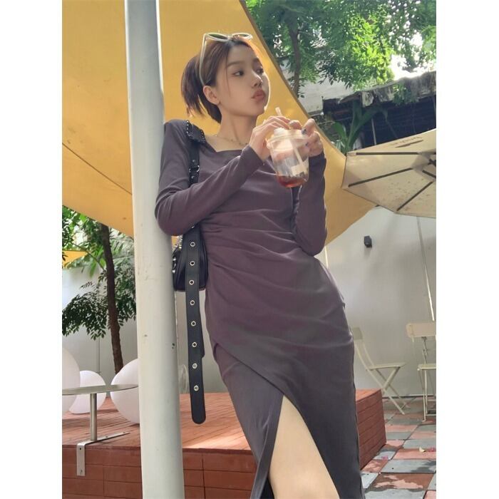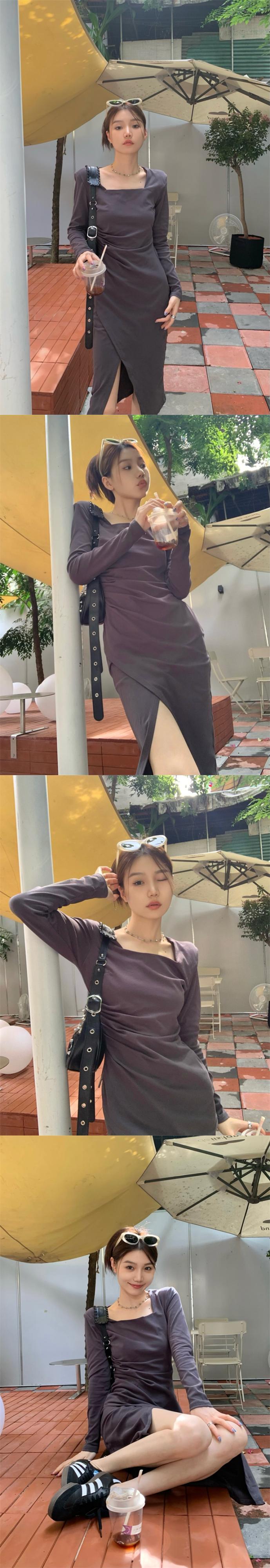 スリットドレス オータムプリーツウェストスカート ロング 秋物 スクウェア 10/5 秋冬 オータム ウインター ナチュラル mi4698790313882