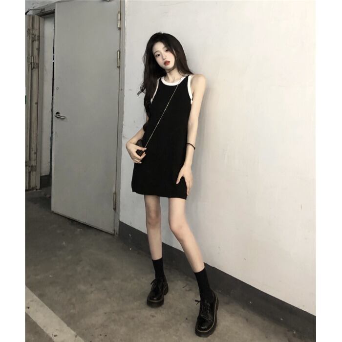 カラーラウンドネックスカート サマースリムショートニットドレス 夏物 Oネック 10/5 秋冬 オータム ウインター ナチュラル mi4685483804049