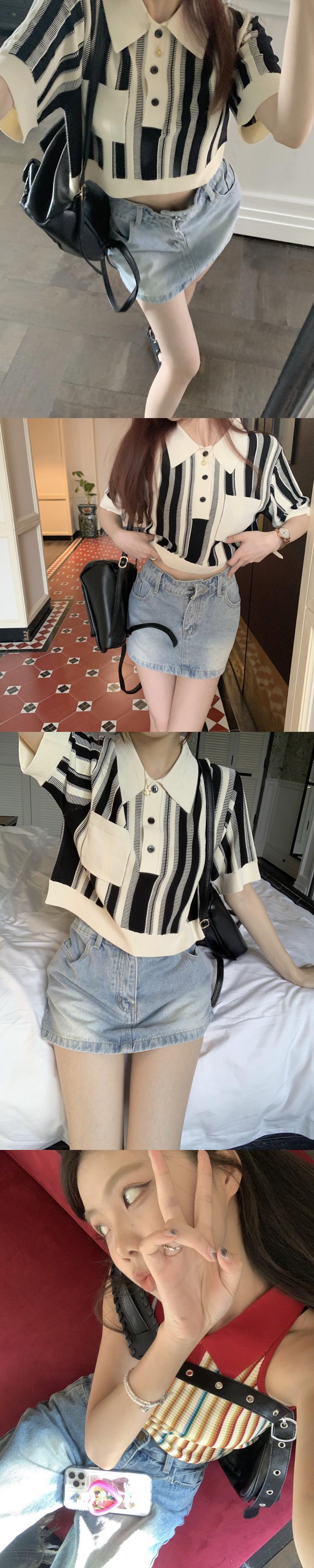 スタンダードストライプニットサマーカラーショートトップス レトロ 大人ガーリー スウィート キュート カジュアル 夏物 10/5 秋冬 オータム ウインター ナチュラル mi4623952207668