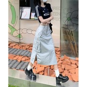 ストラップ ハイウェストウェストスカート サマースリムAライン 夏物 10/5 秋冬 オータム ウインター ナチュラル mi469617952159