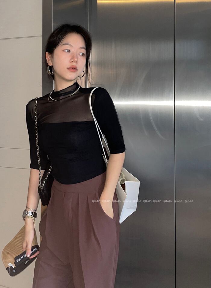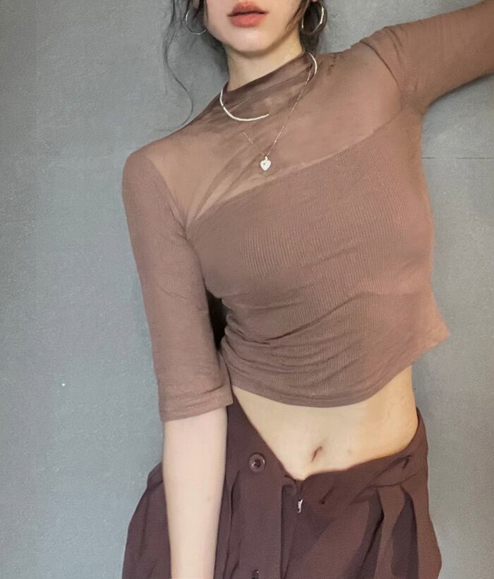 メッシュTシャツ サマースリムトップス 夏物 ステッチ 10/5 秋冬 オータム ウインター ナチュラル mi4628881660126
