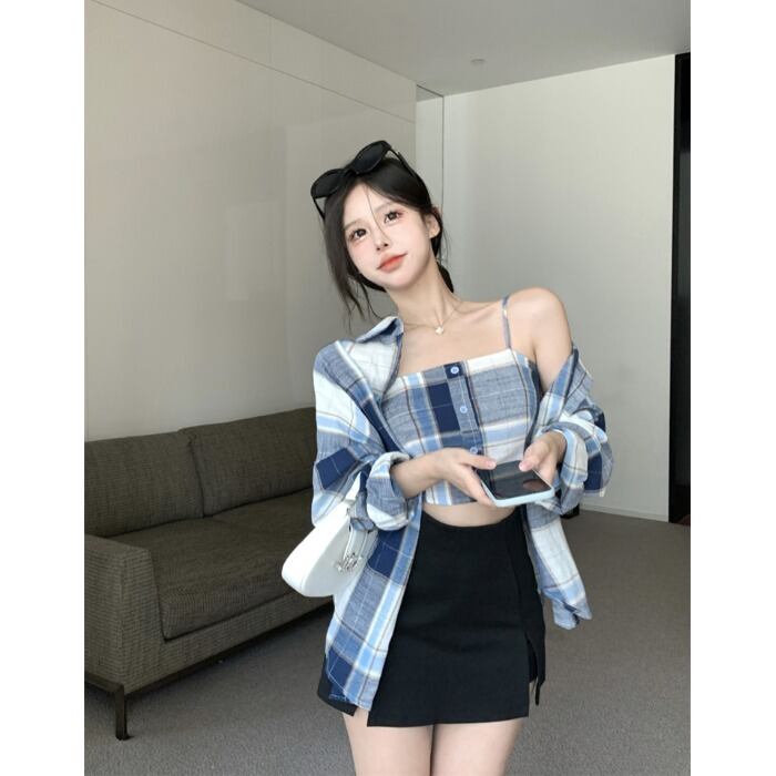 オータムスタンダード格子柄カラールーズシャツ セット レトロ 秋物 10/5 秋冬 オータム ウインター ナチュラル mi4678368085157