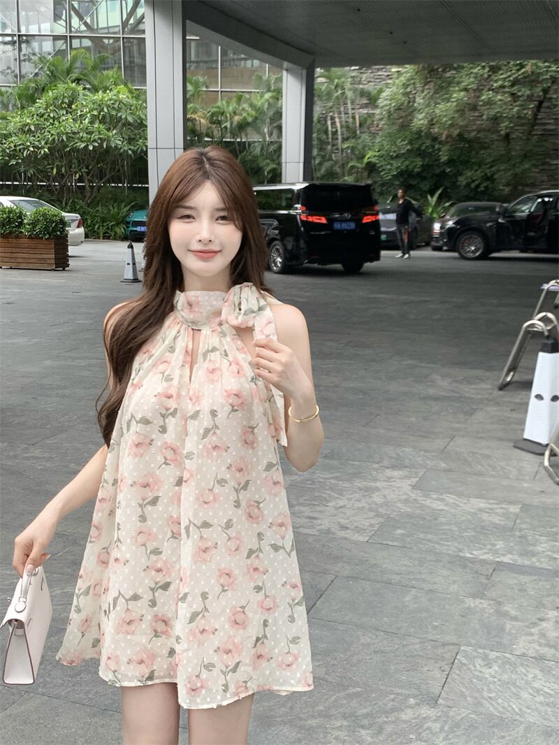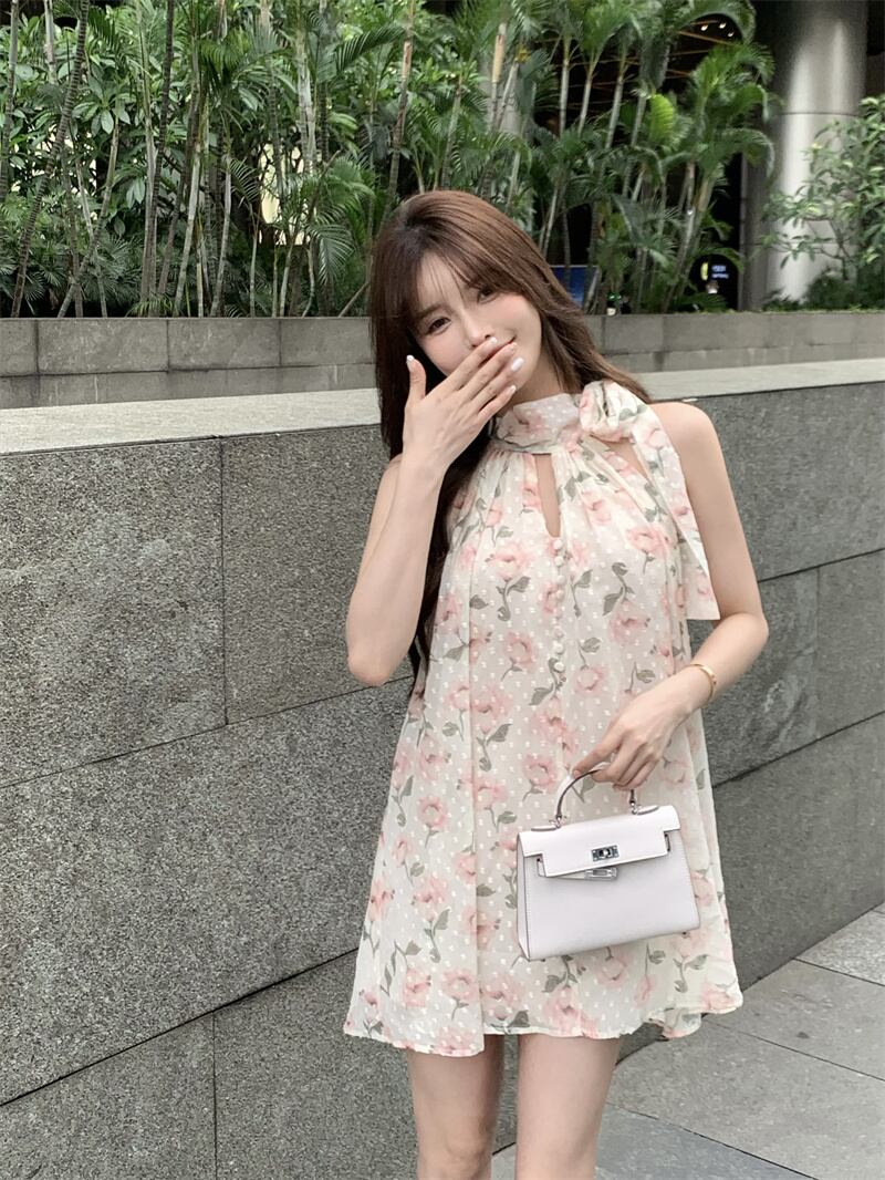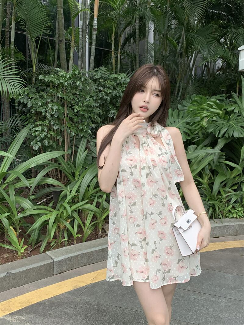 フローラルホルタードレス サマースタイルルーズAラインスカート 夏物 花柄 10/5 秋冬 オータム ウインター ナチュラル mi4685211363992