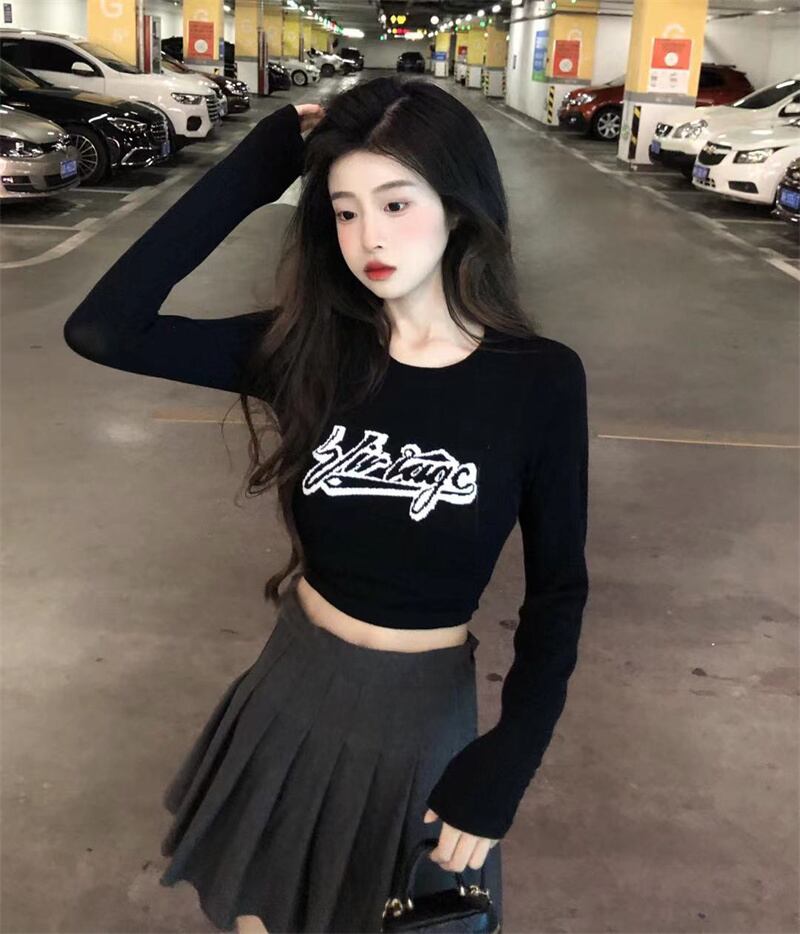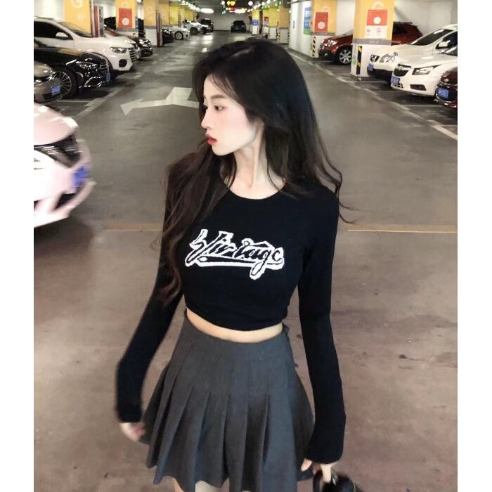 刺繍ニットセーター オータムショートスリムフィットクロップトップ トップス ロング 秋物 10/5 秋冬 オータム ウインター ナチュラル mi4630324093064