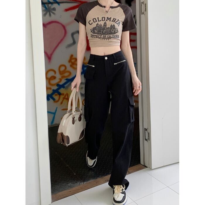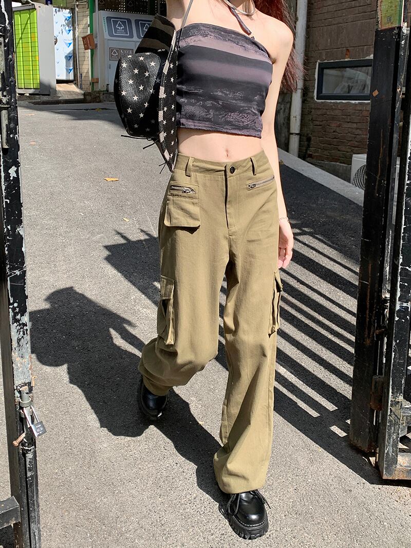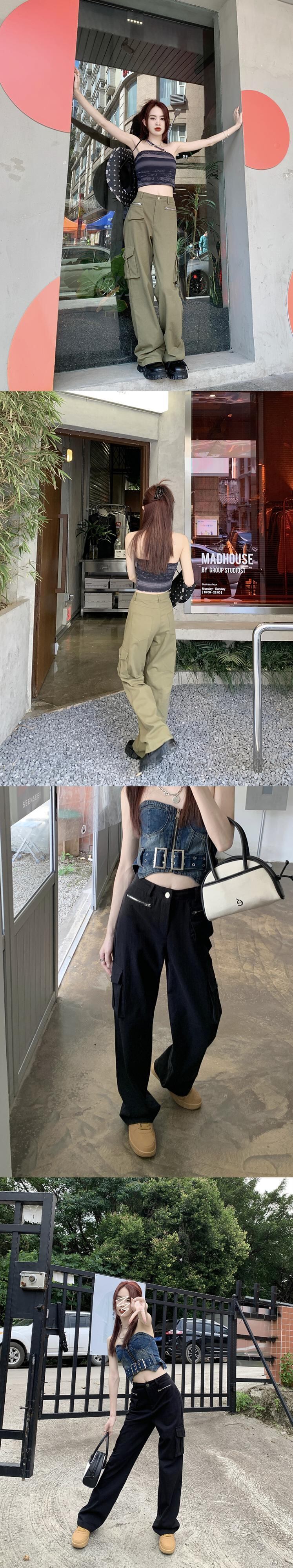 ダブルジッパーオーバーオール カジュアルパンツ オータムルーズハイウェストウェストワイドレッグ 秋物 ワイドパンツ 10/5 秋冬 オータム ウインター ナチュラル mi4656116421216