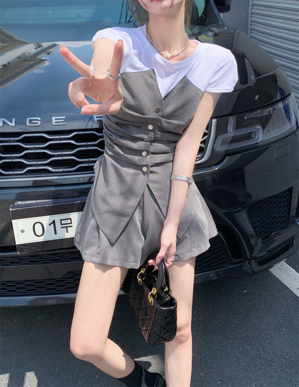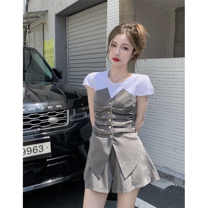 サマーTシャツ カジュアルショーツ セット 夏物 ブルマー ステッチ 10/5 秋冬 オータム ウインター ナチュラル mi464565181136