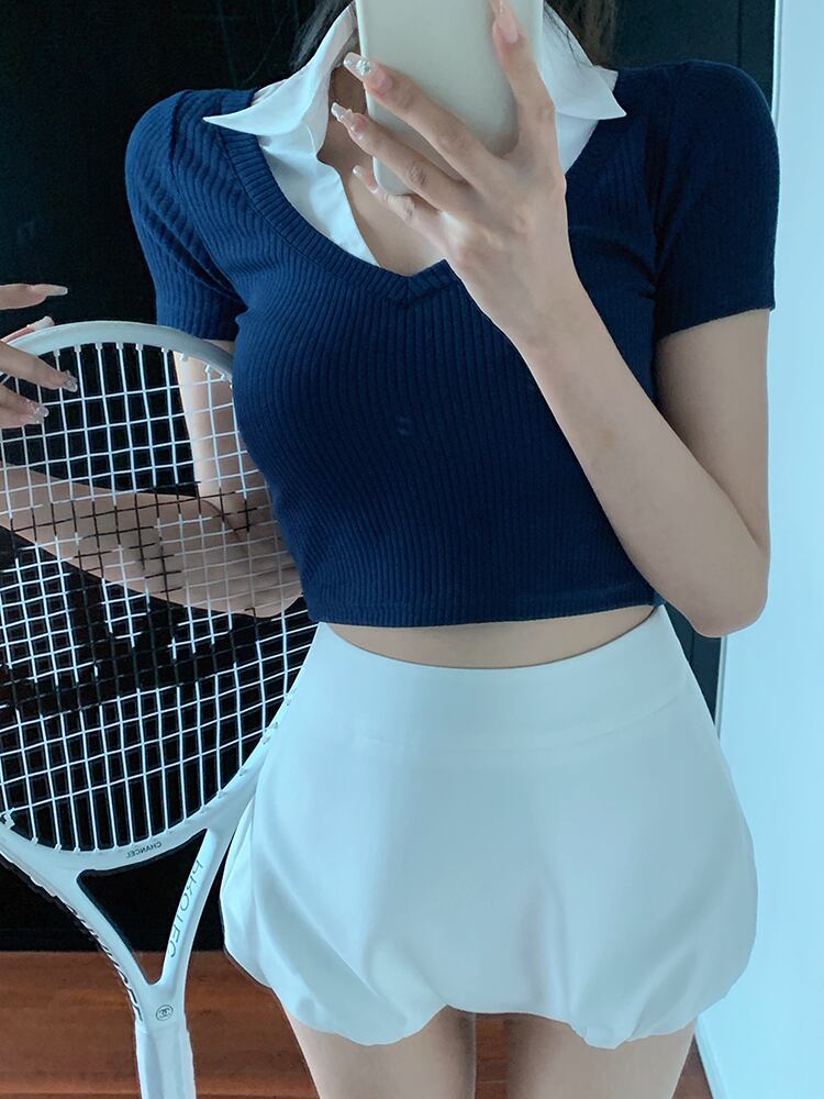 スタンダードカラーショートTシャツ サマートップス レトロ 夏物 ステッチ 10/5 秋冬 オータム ウインター ナチュラル mi4654108497227