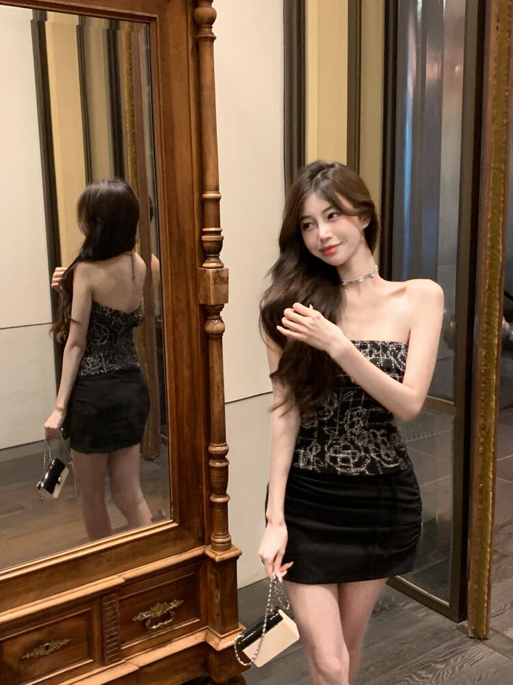 色:ブラックカーディガンワンピース,チューブトップシングルピース