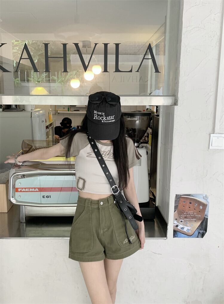 スタンダードショーツ サマーハイウェストスリムAラインパンツ レッド レトロ 刺繍 夏物 ブルマー 10/5 秋冬 オータム ウインター ナチュラル mi4683794977264