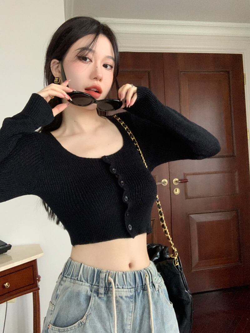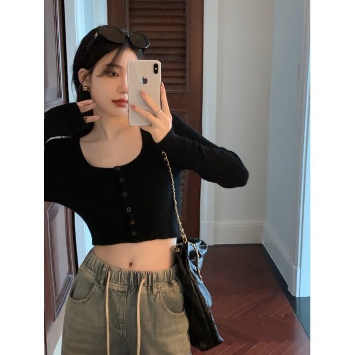 長袖スリーブニットカーディガンオータムスリムフィットショートトップス ロング 秋物 ピュア スクウェア 10/5 秋冬 オータム ウインター ナチュラル mi4636566572336