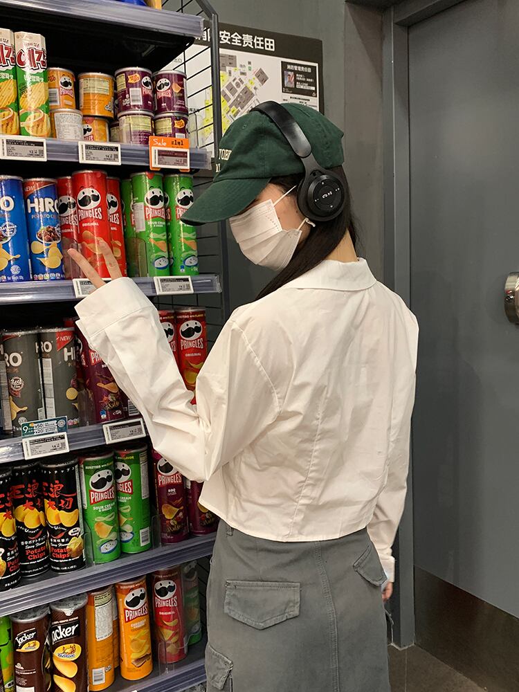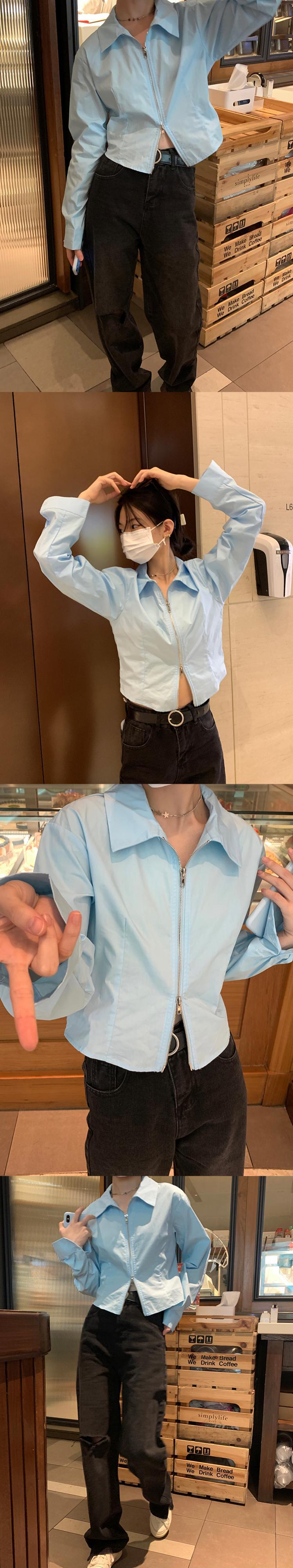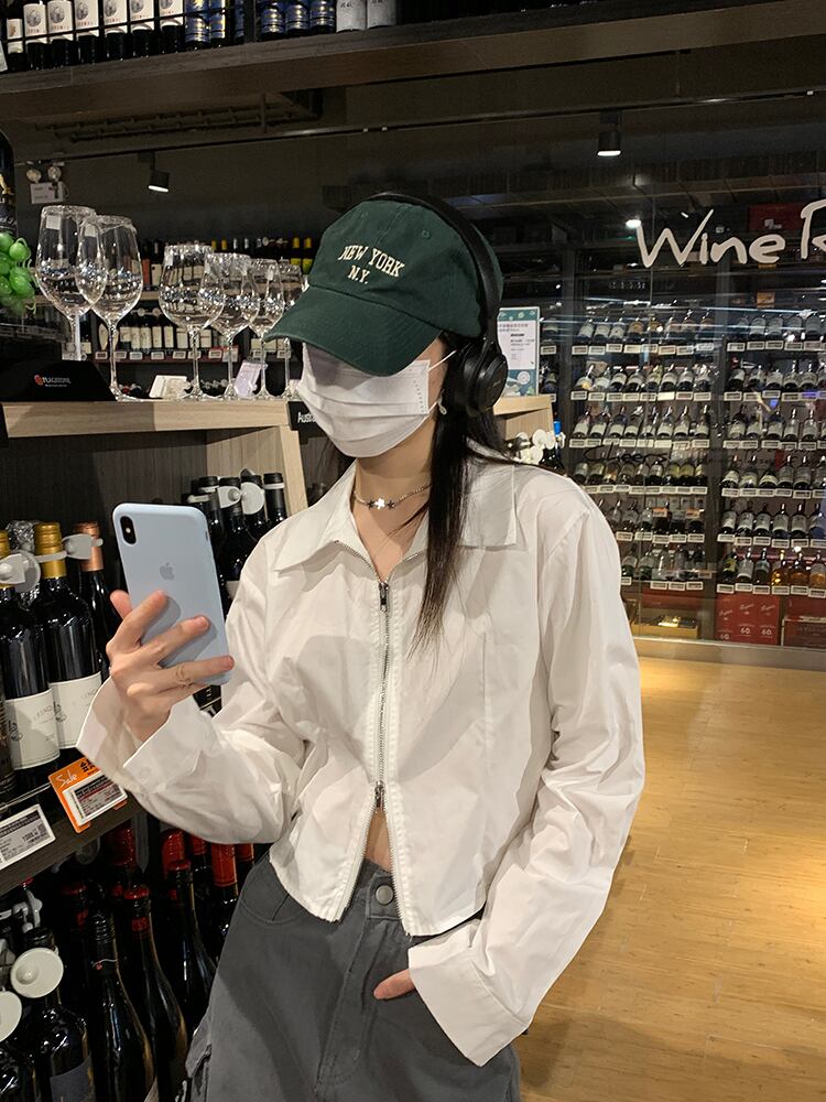 ダブルジッパーホワイトシャツ オータムショートトップス ロング 秋物 10/5 秋冬 オータム ウインター ナチュラル mi4638896172354