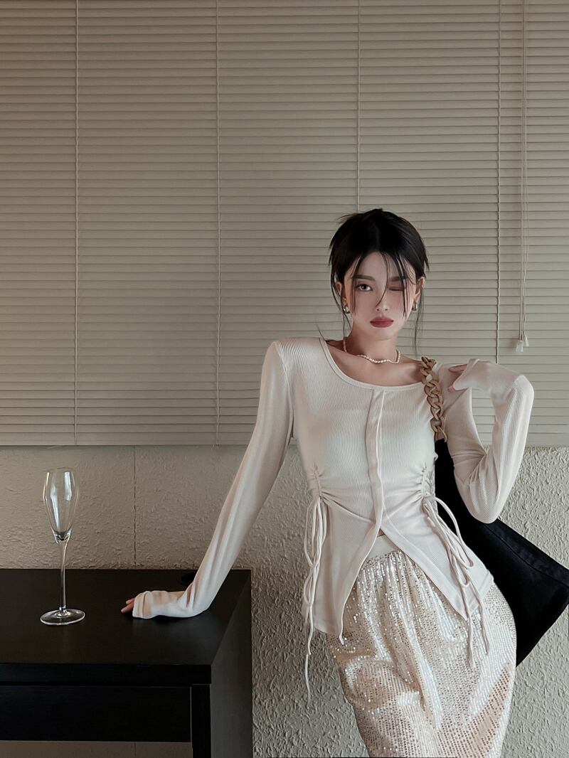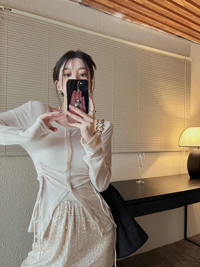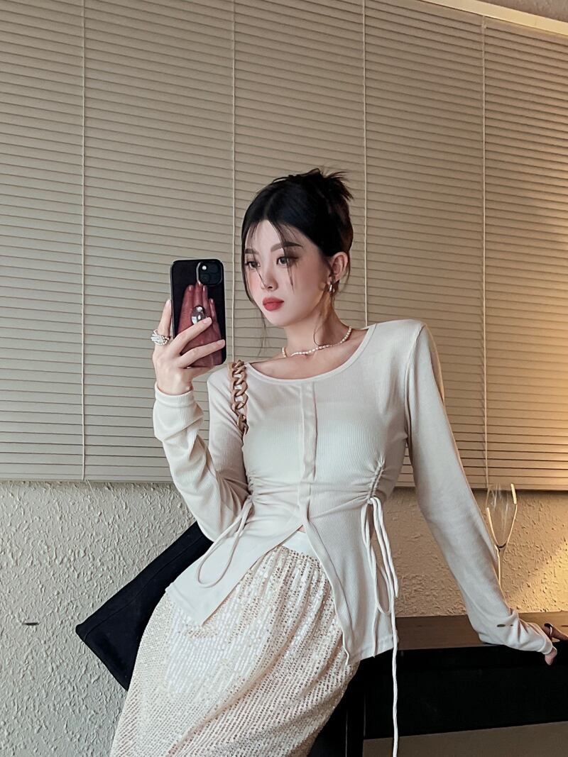 ギャザーTシャツ オータムスリムフィット薄手トップス ロング 秋物 10/5 秋冬 オータム ウインター ナチュラル mi4633179261435